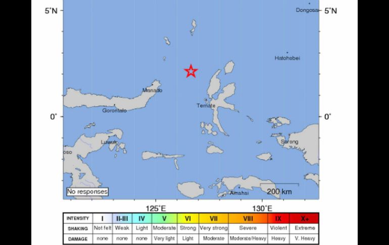 Internacional | Las autoridades no reportan víctimas ni emiten alerta de tsunami tras el sismo Terremoto de 6.6 grados sacude mar de las Molucas en Indonesia Las autoridades no reportan víctimas ni emiten alerta de tsunami tras el sismo Por: EFE 21 de diciembre de 2014 - 12:59 hs El hipocentro del sísmo fue localizado a 54 kilómetros de profundidad y a 168 kilómetros al noroeste de Ternate. EFE / BANGKOK, TAILANDIA (21/DIC/2014).- Un terremoto de 6.6 grados de magnitud en la escala abierta de Richter sacudió el mar de las Molucas, en el noreste de Indonesia, sin que las autoridades hayan informado de víctimas ni emitido alerta de tsunami. El hipocentro del sísmo fue localizado a 54 kilómetros de profundidad y a 168 kilómetros al noroeste de Ternate, según el Servicio Geológico de Estados Unidos, que vigila la actividad sísmica en todo el mundo. El Centro de Alertas por Tsunami del Pacífico indicó que no espera que haya una ola destructiva y no ha emitido ninguna alerta por riesgo de ola gigante. El 26 de diciembre del 2004, un sismo en aguas indonesias formó un tsunami que sembró la destrucción en una docena de naciones bañadas por el océano Índico y causó más de 226 mil muertos. Indonesia se asienta sobre el llamado ''Anillo de Fuego del Pacífico'', un área de gran actividad sísmica y volcánica sacudida por unos siete mil temblores al año, la mayoría moderados. Temas Asia Temblor Indonesia Lee También Octubre 2025 inicia con sismo en Cihuatlán Terremoto sacude Filipinas; alertan de tsunami Sismo se registra hoy lunes al suroeste de Cihuatlán Alerta sísmica sorprende a tapatíos Recibe las últimas noticias en tu e-mail Todo lo que necesitas saber para comenzar tu día Registrarse implica aceptar los Términos y Condiciones