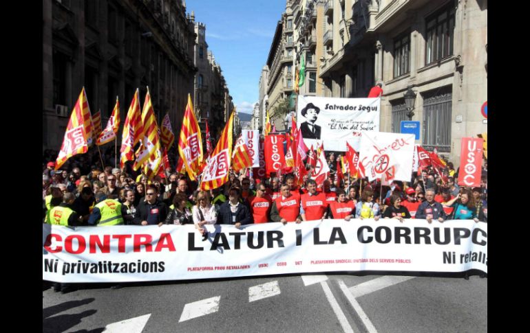 Internacional | Personas en más de 60 ciudades protestan convocadas por la Cumbre Social Toda España se manifiesta contra desempleo y corrupción La Cumbre Social se manifiesta en 60 ciudades españolas contra desempleo y corrupción Por: EFE 10 de marzo de 2013 - 08:24 hs MADRID, ESPAÑA (10/MAR/2013).- La Cumbre Social se manifiesta en toda España contra desempleo y corrupción Miles de personas se manifestaron hoy en 60 ciudades españoles convocadas por la Cumbre Social -que forman 150 organizaciones sociales y sindicales- para protestar contra la alta tasa de desempleo y para pedir una regeneración democrática por el nivel de corrupción. Tras finalizar la manifestación de Madrid, una portavoz de la Cumbre aseguró que, en toda España, salieron a la calle unas 300 mil personas, de ellas 66 mil en Barcelona (noroeste), la marcha más numerosa, y 50 mil en Madrid. Los secretarios generales de Comisiones Obreras (CCOO), Ignacio Fernández Toxo, y de la Unión General de Trabajadores (UGT), Cándido Méndez, encabezaron la manifestación de la capital, en la que también estuvo el coordinador general de Izquierda Unida, Cayo Lara. Toxo denunció que la política del Gobierno español está siguiendo el "dictado de Alemania" y está provocando un retroceso democrático y una "tormenta perfecta" en términos de desempleo y de recortes sociales. Méndez pidió que la jornada de protesta fuese una expresión de rechazo "muy clara" a la política del Ejecutivo porque está basada en "falsedades" y está provocando un paro "brutal" y un alejamiento de los ciudadanos de las instituciones democráticas. En el manifiesto que se leyó en la Puerta del Sol, emblemática plaza del centro de Madrid, se alertó de que la corrupción y los recortes socavan la confianza en las instituciones y amenazan "seriamente" la convivencia democrática. Durante la manifestación de Barcelona se gritó contra el progresivo empobrecimiento de la población, los continuos recortes de los servicios públicos y los escándalos de corrupción. En Andalucía (sur de España), cientos de personas participaron en las concentraciones convocadas en 7 de las 8 capitales andaluzas. También hubo manifestaciones en otras capitales españolas como Valencia (este), Valladolid (centro), Pamplona (norte) o Zaragoza (noreste). Temas Europa España Manifestaciones en el mundo Lee También Sociales: El Informador inicia una nueva etapa con la moderna imprenta "Doña Stella" España consigue su boleto a los cuartos de final del Mundial Sub-20 Derrumbe de edificio en Madrid deja cuatro desaparecidos y tres heridos Lo peor es que Claudia también tiene sus dudas Recibe las últimas noticias en tu e-mail Todo lo que necesitas saber para comenzar tu día Registrarse implica aceptar los Términos y Condiciones