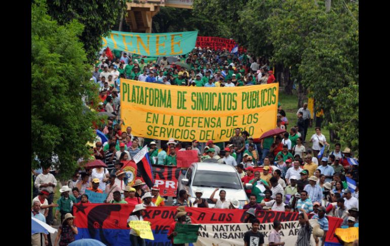 Internacional | A la protesta de los obreros, se unieron campesinos y profesores Trabajadores hondureños protestan por alto costo de alimentos e inseguridad A la protesta de los obreros, se unieron campesinos y profesores del sector público Por: EFE 11 de octubre de 2011 - 16:06 hs Los manifestantes aspiran a un modelo social que sirva a mejor las condiciones de vida de la población. EFE / TEGUCIGALPA, HONDURAS (11/OCT/2011).- Unos 5.000 trabajadores organizados de Honduras protestaron hoy en Tegucigalpa por el alto costo de los alimentos y la inseguridad que vive el país y al menos unos 200 campesinos se manifestaron en defensa de la agricultura. "Estamos protestando por los altos precios de la canasta básica, ese es el centro del reclamo, el pueblo hondureño se encuentra en un estado de indefensión", indicó el secretario de la Central General de Trabajadores (CGT), Daniel Durón, durante la marcha en la capital hondureña. La manifestación se inició en el extremo oriental de la ciudad y terminó en el centro, frente al Parlamento hondureño, donde los trabajadores también criticaron al Gobierno que preside Porfirio Lobo. "Pepe Lobo (Porfirio) viajando y el pueblo hambreando", "No a la privatización de las empresas públicas", "Exigimos seguridad y empleo", eran algunas de las consignas de los trabajadores. En la marcha también participaron unos pocos maestros del sector público y miembros del Frente Nacional de Resistencia Popular (FNRP), cuyo coordinador es el expresidente hondureño Manuel Zelaya, quien fue derrocado el 28 de junio de 2009. "Hemos venido a protestar porque la comida está muy cara y por tanta inseguridad en el país, aún cuando se gastan millones de lempiras en una Secretaría de Seguridad que no funciona", comentó a Efe Noris Cabrera, una profesional universitaria que participó en la marcha. El presidente del Sindicato de Trabajadores de la Empresa Nacional de Energía Eléctrica (STENEE), Miguel Aguilar, dijo a Efe que los sindicalistas aspiran "a un modelo social con planes de inversión para las instituciones del Estado, que son para servir a la población". "Estamos condenando todos los incrementos de la canasta básica y exigimos que haya una rebaja de precios de los combustibles", subrayó Aguilar. El dirigente sindical también pidió al Gobierno que reanude las negociaciones con Petrocaribe de Venezuela para que haya un ahorro por la compra de combustibles (por las facilidades de pago) y que esos recursos se inviertan en educación y salud. En opinión de Aguilar, el modelo neoliberal "avasalla y minimiza la inversión del Estado en las instituciones de servicio público". En otra manifestación promovida por Vía Campesina Internacional, unos 200 labriegos de seis organizaciones marcharon después de los trabajadores hasta el centro de Tegucigalpa "en defensa de la agricultura campesina", dijo a Efe el dirigente Rafael Alegría. "También estamos denunciando a la industria comercial, porque es responsable del calentamiento del continente americano", añadió Alegría, quien además es miembro de la Resistencia Popular surgida tras el golpe de Estado a Zelaya. Alegría señaló que aún cuando Honduras tiene suficientes tierras para cultivar, todos los años se importan millones de sacos de maíz, arroz y fríjoles, granos básicos en la dieta de los hondureños. Hoy también hubo protestas en varias regiones de Honduras de maestros que exigen el pago de salarios atrasados y de pobladores que demandan la reparación de vías públicas, entre otras acciones. Las marchas coincidieron con la salida del presidente hondureño hacia el Vaticano, donde el próximo jueves será recibido por el papa Benedicto XVI. Temas América Latina Manifestaciones en el mundo Honduras Recibe las últimas noticias en tu e-mail Todo lo que necesitas saber para comenzar tu día Registrarse implica aceptar los Términos y Condiciones