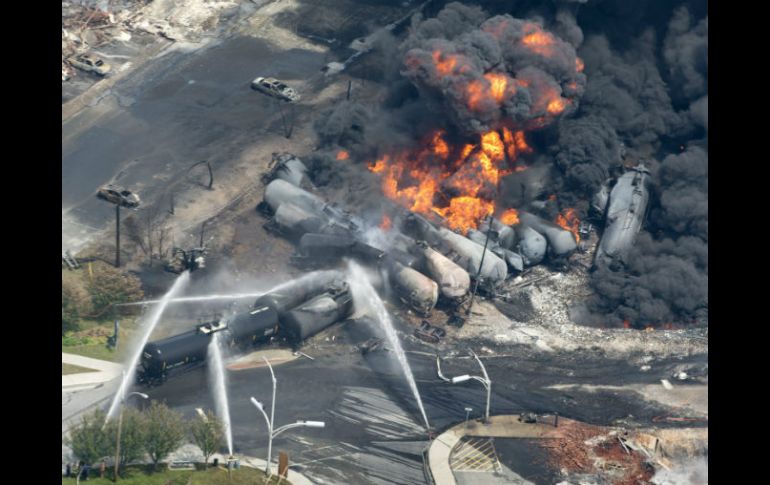 Internacional | Por ahora se desconoce si hay víctimas Tren cargado con petróleo estalla en Quebec Cada uno de los 73 vagones contenía 100 toneladas de crudo, hasta ahora se desconoce si hay víctimas Por: NTX 6 de julio de 2013 - 14:41 hs El accidente ferroviario ocasiona que alrededor de mil personas fueran obligadas a salir de sus hogares. AP / TORONTO, CANADÁ (06/JUL/2013).- El descarrilamiento de un tren, que transportaba petróleo, provocó hoy varias explosiones y un incendio que destruyó una amplia área de la ciudad de Lac-Mégantic, en la provincia canadiense de Quebec. Más de mil personas fueron obligadas a salir de sus casas en Lac-Mégantic, unos 250 kilómetros al este de Montreal, a causa del accidente ferroviario ocurrido la mañana de este sábado cuando el convoy de 73 vagones cambiaba de vía. De acuerdo con el diario canadiense The Globe and Mail, hay reportes de personas desaparecidas, que algunos medios de comunicación estiman en 60, pero el teniente de la policía de Quebec, Michel Brunet, informó que por ahora se desconoce si hay víctimas. Enormes llamas y columnas de humo se elevaron al cielo durante muchas horas tras el descarrilamiento del tren, mientras los bomberos intentaban sofocar el incendio, aunque para este mediodía el fuego persistía a pesar de la constante llovizna en esa región. El tren se descarriló alrededor de la 01:00 horas locales de este sábado (05:00 GMT) y cada uno de los 73 vagones contenía 100 toneladas de petróleo crudo, precisó Christian Blanchet, portavoz de la Autoridad de Medio Ambiente local. Blanchet, citada en reportes del periódico Toronto Sun, detalló que un vagón fue destruido por completo por la explosión y que otros tres se incendiaron, mientras que el combustible se derramó en el río Chaudière. Muchos residentes observan en el perímetro del accidente preocupados por familiares y amigos que habitan en esa zona, aunque rápidamente se creó un grupo en la red social Facebook para ayudar a la localización de las personas que no han podido ser contactadas. Las líneas telefónicas en tres áreas de Lac-Mégantic resultaron dañadas por el accidente, por lo que las comunicaciones permanecen interrumpidas. El cuerpo de bomberos indicó que alrededor de 30 inmuebles fueron destruidos, algunos en la explosión inicial y el resto en el incendio que le siguió. El primer ministro canadiense Stephen Harper expresó su preocupación por la tragedia en su cuenta de la red social Twitter. "Mis oraciones están con todos aquellos afectados en Lac-Mégantic", escribió. Temas Norte América Canadá Accidentes ferroviarios Lee También Chivas y América empatan en partido amistoso 'Chicharito' marca su primer gol al América en partido amistoso Helicóptero se desploma en Huntington Beach, California; reportan cinco heridos Tres personas resultan lesionadas tras explosión de camión en carretera México-Puebla Recibe las últimas noticias en tu e-mail Todo lo que necesitas saber para comenzar tu día Registrarse implica aceptar los Términos y Condiciones