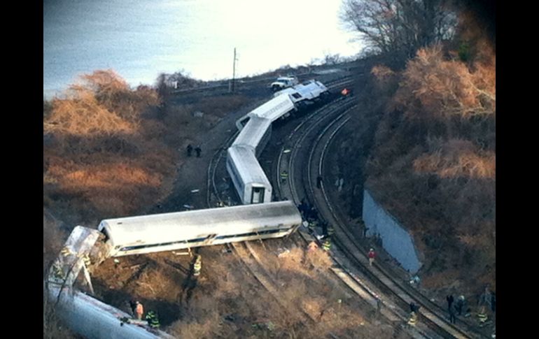 Internacional | El accidente deja cuarenta heridos y al menos cuatro personas fallecidas Tren de pasajeros se descarrila en NY El accidente deja cuarenta heridos y al menos cuatro personas fallecidas Por: EL INFORMADOR 1 de diciembre de 2013 - 07:26 hs Imágenes aéreas mostraron ocho vagones descarrilados. AP / WASHINGTON, ESTADOS UNIDOS (01/DIC/2013).-Un tren de pasajeros se descarriló hoy en el Bronx, en Nueva York, y dejó cuarenta heridos y al menos cuatro personas fallecidas, informó la policía de Nueva York. En las primeras imágenes del accidente, que se produjo a las 7.20 hora local, mostraron ocho vagones descarrilados, pero ninguno dentro del agua, según había sido reportado inicialmente por testigos presenciales. El tren se dirigía desde Poughkeepsie, en el norte del estado, hacia la Grand Central Station de Nueva York. Los servicios de emergencia de la Policía y Bomberos se encuentran ya en el lugar de los hechos y las primeras informaciones apuntan a que aún habría pasajeros atrapados aún dentro de los vagones. Al menos 25 unidades del servicio de emergencias de la ciudad, integradas por 100 elementos, fueron desplegadas al lugar del percance. La Autoridad de Transporte Metropolitano de la ciudad ha confirmado que la línea de metro entre Grande Central y Croton Harmon se encuentra suspendido. Con información de EFE/NTX Temas Norte América Estados Unidos Nueva York Accidentes ferroviarios Recibe las últimas noticias en tu e-mail Todo lo que necesitas saber para comenzar tu día Registrarse implica aceptar los Términos y Condiciones