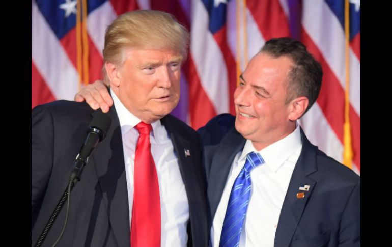 WASHINGTON, ESTADOS UNIDOS (13/NOV/2016).- El presidente electo Donald Trump eligió a Reince Priebus, presidente del Partido Republicano, como secretario general de la Casa Blanca, y a Stephen Bannon, un ejecutivo de medios conservadores, como su asesor principal.El equipo de transición de Trump anunció las decisiones el domingo en momentos en que el magnate organiza su gobierno.Al elegir a Priebus, Trump recurre a un veterano de Washington con profundos vínculos con el liderazgo republicano, en especial Paul Ryan, el presidente de la Cámara de Representantes.Bannon estuvo a cargo del cibersitio conservador Breitbart antes de unirse a la campaña presidencial de Trump durante las elecciones generales. Ninguno tiene experiencia significativa en puestos de gobierno.En un comunicado, Trump dice que Priebus y Bannon son "líderes altamente calificados que trabajaron bien juntos en nuestra campaña".