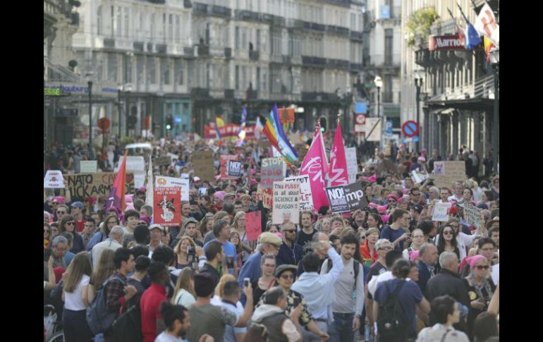 BRUSELAS, BÉLGICA (24/MAY/2017).- El presidente estadounidense, Donald Trump, llegó el miércoles a Bruselas para su primera visita a la Unión Europea y a la OTAN, donde unos 10 mil manifestantes pacifistas, feministas o anticapitalistas le hicieron saber que "no era bienvenido".La marcha partió de la estación del Norte al final de la tarde, poco después de que el Air Force One del presidente estadounidense aterrizase en la base militar de Melsbroek procedente de Roma, y atravesó el centro de Bruselas en un ambiente festivo, bajo el sol.Mientras que el presidente estadounidense era recibido en audiencia por el rey de los Belgas, Felipe, y la reina Matilde, y después por el primer ministro belga, Charles Michel, los manifestantes rivalizaron en originalidad para criticar la política del nuevo inquilino de la Casa Blanca."Esto no es un presidente", rezaba una pancarta, haciendo un juego de palabras con la célebre máxima del pintor surrealista belga René Magritte "Ceci n'est pas une pipe" ("Esto no es una pipa").Entre banderas de Cuba, pancartas pacifistas y los estandartes negros de algunas decenas de anarquistas, un grupo de feministas reclamaban "combatir el sexismo".Los miembros de las juventudes del partido de izquierda radical PTB gritaban un explícito "Trump go away" ("Trump, lárgate")."Estamos a favor de la salida de la OTAN y de la reasignación de sus medios financieros a operaciones a favor de la paz", explicó a la Afp Sophie Rauszer, del movimiento de izquierdas francés La Francia Insumisa.Reunidos bajo el lema "Trump not welcome" ("Trump no es bienvenido"), los manifestantes habían sido convocados por movimientos de izquierdas, oenegés como Amnistía Internacional y una cincuentena de asociaciones más."Dijo que Bruselas era un 'nido de ratas' y luego viene como un conquistador", denunció un manifestante, Yannick Blaise, militante de izquierdas.Las fuerzas de seguridad se mostraron discretas durante la manifestación, que terminó sin incidentes y con una serie de conciertos poco antes de las 21:00 (19:00 GMT).
