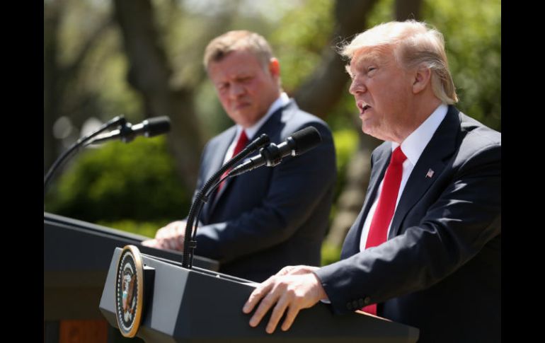 WASHINGTON, ESTADOS UNIDOS (05/ABR/2017).- El presidente de Estados Unidos, Donald Trump, prometió este miércoles "destruir" al grupo yihadista Estado Islámico (EI )y "proteger a la civilización"."Destruiremos al EI, y protegeremos a la civilización. No tenemos elección. Protegeremos a la civilización", remarcó Trump durante una conferencia de prensa conjunta con el rey Abdala II de Jordania, de visita en la Casa BlancaJordania integra la coalición militar encabezada por Washington que lucha contra el EI en Siria e Iraq.