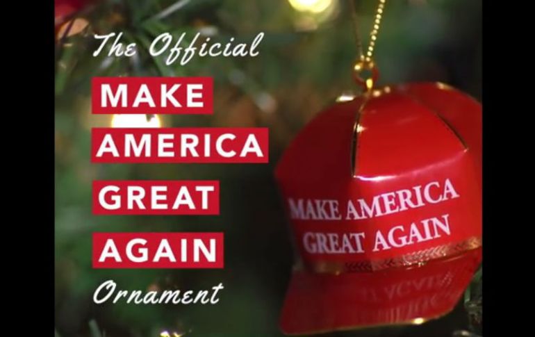 WASHINGTON, ESTADOS UNIDOS (30/NOV/2016).- El presidente electo de EU, Donald Trump, puso a la venta pequeños adornos de su famosa gorra roja con el lema de su campaña "Make America Great Again" ("Haz a EU grande de nuevo") para decorar el árbol de navidad.Un correo electrónico enviado desde la página web oficial de la campaña de Trump a sus seguidores instó a los adeptos del magnate a comprar el ornamento de su tienda en línea.La réplica en miniatura de la característica gorra de la campaña electoral del ahora presidente electo con su famoso lema se encuentra a la venta al precio de 149 dólares en su propia página y a 250 dólares en la web de venta electrónica Amazon.El adorno es una gorra roja con las palabras "Make America Great Again" en mayúscula y en color blanco, con un acabado en oro de 14 quilates y envuelto en una caja dorada.El correo electrónico además informa de que Trump "ama" la Navidad y de que el magnate pronuncia su deseo de una feliz navidad en cada ocasión que se le presenta, para demostrar orgullo por su connotación religiosa y evitar la versión secular "felices fiestas"."Este ornamento coleccionable conmemora el compromiso de Trump con el espíritu navideño y será una gran adición al árbol de tu familia este año", añadió el correo electrónico.