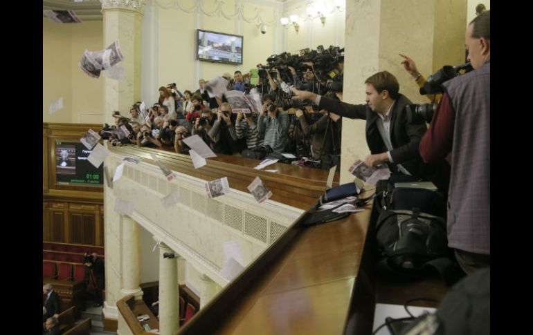 Internacional | Opositores siguen presionando para que el parlamento vote este jueves Ucrania demora decisión sobre Tymoshenko Opositores siguen presionando para que el parlamento vote este jueves Por: AP 19 de noviembre de 2013 - 09:28 hs Un activista de la oposición lanza panfletos desde un balcón de la prensa para apoyar a la ex primer ministro ucraniana. AFP / KIEV, UCRANIA (19/NOV/2013).- El Parlamento de Ucrania ha demorado otra vez una votación sobre la liberación de la ex primera ministro Yulia Tymoshenko, algo que la Unión Europea exige como condición clave para firmar un acuerdo histórico de integración con Ucrania. El portavoz del parlamento, Volodymyr Rybak, dijo el martes a los legisladores que el proyecto de ley no se sometería a votación durante la sesión de la mañana. La oposición siguió presionando para realizar una votación el martes o el jueves. Tymoshenko, principal rival del presidente Viktor Yanukovych, cumple una condena de 7 años de prisión por cargos que Occidente dice que son políticos. La Unión Europea se niega a firmar el acuerdo de asociación con Ucrania si Tymoshenko sigue presa. A manera de compromiso, la Unión Europea ha pedido al Parlamento de Ucrania, dominado por los aliados de Yanukovych, que aprueben una ley que permita la liberación de Tymoshenko para recibir tratamiento médico en Alemania. Temas Europa Juicios Ucrania Recibe las últimas noticias en tu e-mail Todo lo que necesitas saber para comenzar tu día Registrarse implica aceptar los Términos y Condiciones