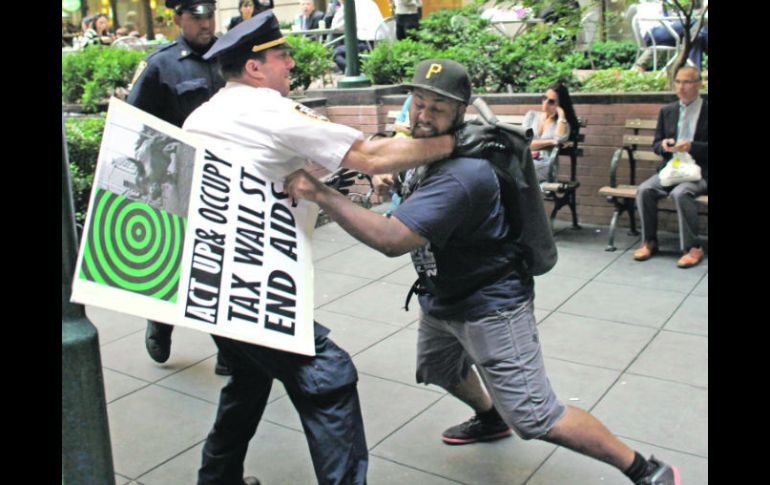 Internacional | Activismo en Estados Unidos Un año después, Ocupa Wall Street protesta por las mismas razones El ''muro popular'', formado por unos mil manifestantes, fue disuelto por la Policía Por: EL INFORMADOR 18 de septiembre de 2012 - 01:39 hs Desafío. Un manifestante forcejea con un oficial neoyorquino que intenta impedir que llegue a la entrada de la zona financiera. AP / NUEVA YORK, ESTADOS UNIDOS (18/SEP/2012).- La celebración del primer aniversario no pudo coronarse con la “toma” de la Bolsa de Nueva York; en cambio, dejó 180 arrestados. El movimiento social Ocupa Wall Street, que reunió a unos mil activistas a un año de su alzamiento —muchos menos de los esperados—, por el contrario, sí halló eco en los medios. Ocupa Wall Street, el movimiento que fue declarado “Persona del año” por la revista Time, se inspiró en los “indignados” del M15 de España y las revueltas de la “Primavera árabe”, y comenzó a tomar las calles del Sur de la Gran Manzana para protestar “por la avaricia y los excesos” del emporio financiero. Entre los detenidos hubo personas en sillas de ruedas, por cortar el tráfico vehicular e intentar bloquear la entrada al centro financiero de Nueva York, creando un “muro popular”. La baja concurrencia pone de manifiesto el desafío que enfrenta el movimiento para mantenerse vigente tras haber generado una controversia nacional en torno a la desigualdad económica. La Policía también se apostó en grandes bancos y edificios del gobierno, al tiempo que custodiaba la tradicional escultura de Wall Street conocida como “Charging Bull”. El grupo se reunió cerca del Zuccotti Park, donde un campamento espontáneo se convirtió en su improvisada sede central el año pasado, pero la Policía les impidió acceder al parque. Varios activistas llevaban carteles, entre ellos uno que decía “Terminen con la Fed (Sistema de reserva Federal)” y otro que señalaba “Somos estudiantes, no clientes”. “Los asuntos que nos trajeron aquí el año pasado están aún más presentes hoy en día”, declaró uno de los manifestantes. De acuerdo con la Policía y de los propios organizadores, ayer se unieron a las acciones de Ocupa Wall Street unas mil personas. En San Francisco también hubo protestas, al igual que en Vancouver, Canadá. FRASE "Lo que pasó aquí el año pasado fue un proceso que no puede ser detenido. Lo que pasó aquí significará la perdición del estado corporativo." Chris Hedges, premio Pulitzer 2002. Temas Norte América Estados Unidos Manifestaciones en el mundo Wall Street Nueva York Lee También La paz siempre es una buena noticia Revelan llamada al 911 con que se reportó la muerte de Diane Keaton SMN advierte lluvias y bajas temperaturas en México esta semana Organismo internacional prevé tensión comercial a nivel global en 2026 Recibe las últimas noticias en tu e-mail Todo lo que necesitas saber para comenzar tu día Registrarse implica aceptar los Términos y Condiciones