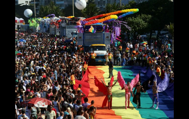 Internacional | Autoridades calculan que la multitud podría llegar al millón a lo largo del día Una multitud toma Copacabana para celebrar Orgullo Gay Autoridades de Río de Janeiro calculan que la multitud podría llegar al millón a lo largo del día Por: EFE 13 de octubre de 2013 - 16:36 hs Desfilan carrozas formando una alegre caravana animada en todo momento por música y personas bailando. EFE / RÍO DE JANEIRO, BRASIL (13/OCT/2013).- Decenas de miles de personas de todas las edades y orientaciones sexuales tomaron hoy la avenida que bordea la famosa playa de Copacabana para celebrar la décima octava edición del Desfile del Orgullo Gay de Río de Janeiro, bajo el lema "Somos millones de voces". La multitud, que la policía calculó en 300 mil personas en el momento del inicio del desfile, puede alcanzar un millón a lo largo del día, según esperan los organizadores, atraídos por la música electrónica, pop y popular de los quince "tríos eléctricos", como son conocidos los camiones equipados con palco para las orquestas y poderosos equipos de amplificación de sonido. Estas carrozas animaron la fiesta, formando una alegre caravana que estuvo animada en todo momento por música y personas bailando. La multitud extendió en algunos tramos una gigantesca bandera con los colores del arco iris, símbolo de la comunidad Lesbianas, Gais, Transexuales y Bisexuales (LGTB). En las carrozas, los globos, los disfraces y la fiesta se combinaron con mensajes en los que se pedía el fin de la discriminación sexual y la intolerancia religiosa. Se pudieron leer lemas como "Un lugar tan maravilloso como Río no combina con la homofobia" o "Por un Río con libertad religiosa y derechos humanos". Decenas de miles de personas acudieron a Copacabana para asistir al desfile, que recorrió de punta a punta la Avenida Atlántica, la vía que bordea la más emblemática de las playas de Brasil y que en junio pasado fue palco de una multitudinaria misa celebrada por el papa Francisco. El desfile estuvo organizado por la ONG de Río de Janeiro Arco-Iris, que este año celebra su vigésimo aniversario en defensa de la población LGTB. Una de las principales reivindicaciones de los activistas fue la reglamentación del matrimonio entre homosexuales, que fue legalizado en mayo pasado por el Consejo Nacional de Justicia (CNJ) pero sin ninguna legislación específica que garantice su cumplimiento. Brasil se convirtió en el tercer país latinoamericano donde en la práctica es posible el matrimonio entre personas del mismo sexo. A diferencia de los otros dos, Argentina y Uruguay, la iniciativa partió de la Justicia y no del Parlamento. Temas América Latina Brasil Manifestaciones en el mundo Homosexualidad Lee También ¿Dónde ver EN VIVO el partido de J13 Cruz Azul vs América? Zonas del EOU donde aún hay boletos para el Cruz Azul vs América Marchas CDMX: HOY, 17 de octubre, estas son las afectaciones viales Sin maíz no hay país Recibe las últimas noticias en tu e-mail Todo lo que necesitas saber para comenzar tu día Registrarse implica aceptar los Términos y Condiciones