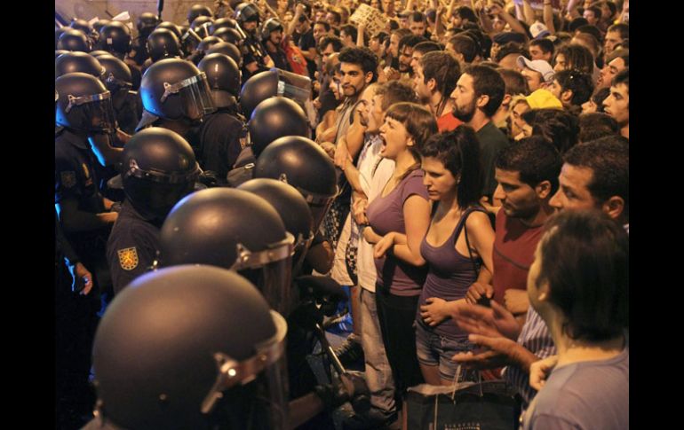 Internacional | La Puerta del Sol es desde el 15 de mayo el epicentro del movimiento de protesta Unos mil ''indignados'' toman el centro de Madrid vigilados por la Policía En Barcelona y en Valencia, otros grupos de indignados celebraban concentraciones de apoyo a sus colegas madrileños Por: EFE 3 de agosto de 2011 - 16:14 hs MADRID, ESPAÑA (03/AGO/2011).- Más de un millar de simpatizantes del Movimiento 15-M iniciaron esta noche en Madrid una marcha hacia la Puerta del Sol, en protesta por el desalojo policial de sus "acampadas" en los dos últimos días, cuando la capital se prepara para la próxima visita del papa Benedicto XVI. "De norte a sur, de este a oeste, la lucha sigue cueste lo que cueste", gritaban los manifestantes durante su marcha, que comenzó en la Plaza de Atocha. La idea de los "indignados" es llegar hasta la Puerta del Sol, aunque los accesos a esta céntrica plaza madrileña permanecen cortados y vigilados desde la víspera por un fuerte operativo policial. En las pancartas podían leerse mensajes como "¿Demócrata? ¡No te calles! toma la calle", "libertad de expresión", "un papa pagado, bendice a robados" o "En Valencia y Madrid, con el papa abusos mil". Madrid se prepara para la visita del papa Benedicto XVI, entre los días 18 y 21, con motivo de la Jornada Mundial de la Juventud (JMJ), y los "indignados" achacan la acción policial a este acontecimiento. Los "indignados" son personas adheridas al movimiento 15-M, llamado así porque surgió el 15 de mayo pasado y que desde entonces ha levantado "acampadas" en varios pueblos y ciudades de España para pedir "democracia real" y un cambio político y social. La Puerta del Sol fue desde el 15 de mayo el epicentro del movimiento de protesta, con cientos de jóvenes concentrados que, al marcharse del lugar un mes más tarde, dejaron un "puesto de información", el mismo que este martes fue desmantelado por una acción policial calificada de violenta por los "indignados". A primera hora de hoy, nuevamente, la Policía desalojó a una veintena de "indignados" que acamparon en la Plaza Mayor después que en la noche del martes los volvieran a ocupar durante varias horas las calles del centro madrileño. En Barcelona y en Valencia, otros grupos de "indignados" celebraban concentraciones de apoyo a sus colegas madrileños. Temas Europa España Manifestaciones en el mundo Lee También Mantendrán maiceros protesta en caseta de Ocotlán Protesta de trabajadores del SAT podría traer estas consecuencias para los contribuyentes Trabajadores del SAT se manifiestan en Jalisco SAT: Estas son las oficinas cerradas en CDMX por el paro de trabajadores Recibe las últimas noticias en tu e-mail Todo lo que necesitas saber para comenzar tu día Registrarse implica aceptar los Términos y Condiciones