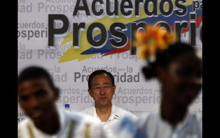 Internacional | Visita Colombia Urge ONU a actuar contra el cambio climático El secretario general de la ONU, Ban Ki-moon advierte que cada vez los desastres serán más fuertes Por: EFE 12 de junio de 2011 - 01:49 hs El secretario general de la ONU, Ban Ki-moon, observa un bailable en Cartagena. EFE / CARTAGENA, COLOMBIA (12/JUN/2011).- El secretario general de la Organización de las Naciones Unidas (ONU), Ban Ki-moon, urgió de visita en Colombia, a tener avances en las negociaciones sobre cambio climático. “Necesitamos lograr avances en las negociaciones relativas al cambio climático”, pidió Ban durante una intervención ante un encuentro gubernamental del Ejecutivo de Colombia, al que asistió invitado por el presidente Juan Manuel Santos. Advirtió que cada vez “los desastres golpean con mayor fuerza” al Planeta. “Colombia está sintiendo los efectos del cambio climático... es por eso que debemos trabajar juntos”. Recordó que la ciudad de Río de Janeiro acogerá en 2012 una nueva conferencia internacional sobre cambio climático. La cita, por iniciativa de Brasil, se celebrará veinte años después de la Cumbre de la Tierra, celebrada en 1992 en la misma ciudad, con la asistencia de delegaciones de 172 países. Ban invitó a la comunidad internacional a asumir compromisos y consensos para que “la Cumbre de Río+12 sea un éxito para la humanidad”. El secretario general de la ONU llegó el viernes a Bogotá, en la primera escala de una gira que continuará por Argentina, Uruguay y Brasil. Temas América Latina Cambio Climático Colombia ONU Lee También ¿Dónde ver EN VIVO el partido amistoso México vs Colombia? José Jerí asume como presidente de Perú Congreso de Perú destituye como presidenta a Dina Boluarte Chivas viaja con ‘Chicharito’ y Robinho al amistoso ante América en Estados Unidos Recibe las últimas noticias en tu e-mail Todo lo que necesitas saber para comenzar tu día Registrarse implica aceptar los Términos y Condiciones