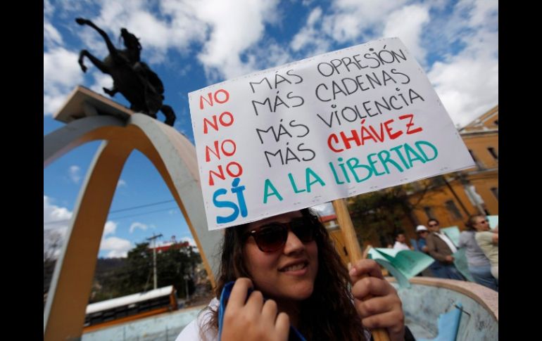 Internacional | Manifestantes califican a Chávez de 'neodictador' Venezolanos protestan en México contra gobierno de Hugo Chávez Integrantes de la agrupación Venezolanos Unidos en México portaron cartulinas y pancartas para protestar contra las recientes reformas legales del gobierno de su nación Por: NTX 23 de enero de 2011 - 17:33 hs Opositora al gobierno de Chávez sostiene una pancarta recordando el 53 aniversario del regreso de la democracia a Venezuela. REUTERS / CIUDAD DE MÉXICO (23/ENE/2011).- Un grupo de venezolanos se manifestó en el obelisco a Simón Bolívar, ubicado en el Paseo de la Reforma, contra las 'prácticas antidemocráticas' del gobierno de Hugo Chávez, a quien calificaron de 'neodictador'. En el marco del Día de la Democracia que se celebra en su país, integrantes de la agrupación Venezolanos Unidos en México (VUM) portaron cartulinas y pancartas para protestar contra las recientes reformas legales del gobierno de su nación. Los manifestantes permanecieron en el lugar más de dos horas sin afectar el tránsito en la zona, y de esa forma se sumaron a protestas simultáneas llevadas a cabo en 30 ciudades del mundo, explicaron los organizadores. Uno de los activistas identificado como Leonardo Ramos indicó que este día 'no hay qué celebrar en Venezuela', pues a su parecer en los 12 años que lleva Hugo Chávez Frías al frente del gobierno de ese país la democracia ha sufrido un ataque sistemático. Precisó que tan solo el año pasado se aprobaron leyes que violentan la constitución venezolana y que han convertido al gobierno de Chávez en una dictadura. Si bien el gobierno venezolano ya era autocrático, lo cual ya es malo, ahora está fuera de todo parámetro democrático, aseveró el manifestante. Aclaró que es pacífica la oposición tanto de venezolanos que como él tuvieron que salir de Venezuela ante la persecución del gobierno, como de quienes aún viven allá; 'el único propósito es pedir a los gobiernos que no evadan la mirada cuando se trata de nuestro país'. 'Para nosotros es muy importante que la comunidad internacional denuncie la violación a los derechos humanos y la falta de constitucionalidad que existe en el gobierno de Venezuela', expresó Leonardo Ramos. Temas América Latina Venezuela Hugo Chávez México Lee También Revelan el número de personas no localizadas tras lluvias "atípicas" ¿Dónde ver EN VIVO el partido amistoso México vs Ecuador? ¡Korn regresa a México! Esto debes saber sobre la venta de boletos "La Mañanera" de Sheinbaum de hoy lunes 13 de octubre de 2025 Recibe las últimas noticias en tu e-mail Todo lo que necesitas saber para comenzar tu día Registrarse implica aceptar los Términos y Condiciones