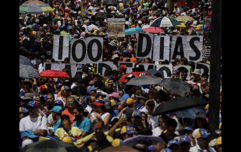 CARACAS, VENEZUELA (09/JUL/2017).- Venezuela cumple este domingo 100 días de protestas contra el presidente Nicolás Maduro que dejan 91 muertos, bajo la incertidumbre sobre si la excarcelación del opositor Leopoldo López abrirá las puertas a una negociación que destrabe su profunda crisis política."Cien días y sigo en rebeldía contra la tiranía", se leía en pancartas que levantaban muchos de los dos mil opositores que se concentran en el este de Caracas, quienes también llevaban afiches y camisetas con el rostro de López.Símbolo de los opositores encarcelados, López quedó el sábado bajo arresto domiciliario luego de tres años y cinco meses en prisión, tras lo cual la oposición llamó a seguir protestando hasta lograr "su libertad plena y la del país"."Estamos cumpliendo 100 días de resistencia por Venezuela, seguimos en la calle con más firmeza rumbo al plebiscito", dijo el diputado Juan Andrés Mejía, en rueda de prensa de la opositora Mesa de la Unidad Democrática (MUD).La MUD prepara para el 16 de julio una consulta popular simbólica, confiada en mostrar el rechazo masivo a una Asamblea Constituyente convocada por Maduro, que ve como un "fraude" del chavismo para afianzar "una dictadura".En el centro de la ciudad, otras miles de seguidores oficialistas, vestidos de rojo, participaban en un acto de campaña por la Constituyente, cuya elección se hará el 30 de julio.Chavistas críticos del gobierno expresaron este domingo su rechazo a la Constituyente y consideraron este domingo "legítima" la consulta de la oposición. "Seguiremos luchando"En un mensaje leído por su copartidario Freddy Guevara, López llamó a seguir en la calle y a apoyar el plebiscito.Su excarcelación es el guiño más visible entre gobierno y oposición desde que el 1 de abril comenzó una ola de protestas -que deja 91 muertos- en medio de una devastadora crisis económica.El Tribunal Supremo de Justicia (TSJ), que la oposición acusa de servir al gobierno, alegó "problemas de salud" para dar casa por cárcel a López, a quien según su familia le pusieron un brazalete electrónico.La oposición ve la salida de López de prisión como un "innegable triunfo" de las protestas. "Seguiremos luchando por la libertad de los presos políticos", aseguró Lilian Tintori, esposa del opositor.Según la ONG Foro Penal, con los arrestos en estos 100 días, los "presos políticos" suman unos 430. La chavista Defensoría del Pueblo no descartó más excarcelaciones."Nadie ofrece su cabeza"Analistas estiman que es muy pronto para medir el alcance de la medida, pero es un hecho que el gobierno cedió al abrir la celda a quien tilda de "monstruo", y López aceptó salir pese a haber dicho que solo lo haría con libertad plena y tras la liberación de todos los opositores presos.Su excarcelación se dio tras meses de gestiones del expresidente del gobierno español José Luis Rodríguez Zapatero, quien medió el año pasado en una fracasada negociación entre gobierno y oposición.En un comunicado, Rodríguez Zapatero abogó por que este "paso" permita "avanzar en favor de la paz y de la convivencia democrática" y se intensifiquen los esfuerzos "en la búsqueda de soluciones concertadas" a la crisis.La salida de prisión fue saludada por gobiernos de América Latina, España y Estados Unidos. Luis Almagro, secretario general de la OEA, duro crítico de Maduro, ve una "oportunidad de reconciliación" y una "salida democrática".Maduro, quien acusa a la oposición de promover la violencia en las protestas para darle un golpe de Estado, dijo esperar que acepten dialogar y que López "lance un mensaje de rectificación y de paz".El analista Luis Vicente León opina que al gobierno le interesa bajar la tensión ante el riesgo de una mayor desestabilización y una fractura en la Fuerza Armada, mientras la oposición moderada quiere evitar "el suicidio en una situación de perder-perder"."Hay, sin duda, una oportunidad para la negociación, pero una negociación que no es popular en ninguno de los extremos y que implica concesiones", advirtió León. "Nadie ofrece su cabeza de forma voluntaria", agregó.La fiscal general, Luisa Ortega, chavista devenida en la mayor crítica de Maduro, cree que el gobierno busca lavar su imagen con esa excarcelación, y fustigó que los presos sean tratados como "rehenes" en una negociación.Ortega podría ser destituida pronto por un juicio que impulsa el oficialismo, lo que desataría otra lluvia de críticas contra el gobierno, tras la tormenta de la semana pasada por la irrupción violenta de un grupo chavista en el Parlamento de mayoría opositora.