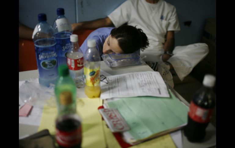 Internacional | El país registra más de 50 homicidios por cada 100 mil habitantes Violencia desborda hospitales en Guatemala La atención de pacientes con lesiones por bala o rama blanca consume cerca del 10% del presupuesto del ministerio de Salud Por: AP 27 de diciembre de 2010 - 20:50 hs Una enfermera duerme sobre una mesa para reponerse de la agotadora jornada en el área de emergencias. AP / GUATEMALA, GUATEMALA (27/DIC/2010).- En las noches de los fines de semana y días de pago, la emergencia del Hospital San Juan de Dios -el más grande de esta capital- se ve desbordada por la cantidad de heridos de bala y acuchillados. Según cifras oficiales, la atención de pacientes con este tipo de lesiones consume cerca del 10% del presupuesto del ministerio de Salud. "Nos afecta, porque tenemos una gran cantidad de baleados que aumenta y el personal es el mismo que hemos tenido siempre'', dijo el jefe de la emergencia del hospital San Juan de Dios, Mario Contreras. Entre enero y noviembre de 2010, mil 224 personas fueron atendidas por balazos o cuchilladas en la emergencia de este hospital y en el Hospital Roosevelt, más de 650 fueron atendidas por heridas de bala. Estos dos hospitales concentran cerca de un tercio de las consultas médicas del país. En septiembre, el ministro de Salud, Ludwing Ovalle, dijo que el costo de la violencia es para ese ministerio de unos 350 millones que quetzales -unos 44 millones de dólares- cerca del 10.5% del presupuesto total de la dependencia. Guatemala, con más de 50 homicidios por cada 100 mil habitantes es uno de los países más violentos del hemisferio, superado por Honduras y El Salvador. En 2009, fueron asesinadas seis mil 451 personas de acuerdo con cifras de la policía. Marvin Cruz, de 15 años, es uno de los afectados de forma indirecta por la violencia. No fue víctima de un disparo, pero cuando iba a ser operado de apendicitis ingresaron tres heridos de bala que relegaron su caso y cuando por segunda ocasión se había desocupado un quirófano para atenderlo, llegaron nuevos casos de baleados que entraron antes que él a cirugía. Doce horas transcurrieron después de que llego a la emergencia hasta que fue finalmente atendido de su apendicitis. Temas América Latina Guatemala Recibe las últimas noticias en tu e-mail Todo lo que necesitas saber para comenzar tu día Registrarse implica aceptar los Términos y Condiciones