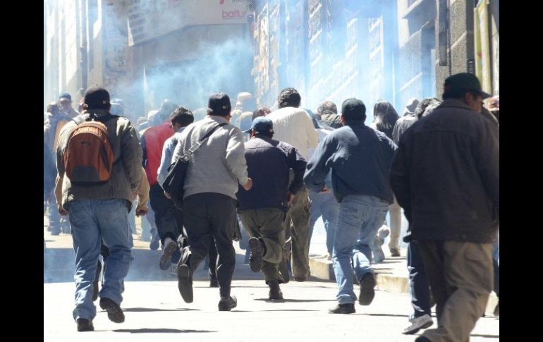 Internacional | Miles de manifestantes, universitarios y médicos llevan siete semanas de paro Violentos disturbios en huelga sindical contra Morales Miles de manifestantes, universitarios y médicos llevan siete semanas de paro contra un decreto de Morales que aumenta de 6 a 8 horas su jornada laboral Por: EFE 9 de mayo de 2012 - 18:55 hs Las barricadas de agentes antidisturbios respondieron con gases lacrimógenos. REUTERS / LA PAZ, BOLIVIA (09/MAY/2012).- La primera jornada de una huelga sindical de 72 horas concluyó hoy en Bolivia con violentos disturbios cerca del Palacio de Gobierno en La Paz, mientras los partidarios del presidente Evo Morales marchaban en otra ciudad para apoyarle, en la séptima semana de conflictos sociales sin visos de solución. Los mayores desórdenes se vivieron en La Paz, donde miles de manifestantes, sobre todo universitarios y médicos con batas blancas, intentaron entrar por la fuerza a la plaza Murillo, donde están los palacios de Gobierno y del Legislativo. Algunos manifestantes lanzaron cartuchos de dinamita medianos, en Bolivia llamados "cachorros", contra las barricadas de agentes antidisturbios, que respondieron con gases lacrimógenos. Según medios locales, hay universitarios heridos y desmayados por las cargas de gas y un fotógrafo resultó lesionado de gravedad en la pierna por la explosión de una granada lacrimógena. El viceministro de Régimen Interior, Jorge Pérez, dijo que dos policías fueron lesionados por esquirlas de las cargas de dinamita. Aparte de los incidentes violentos y los bloqueos de vías en varias ciudades, la huelga general convocada por la Central Obrera Boliviana (COB), la mayor organización sindical del país, tuvo escaso seguimiento en los centros de trabajo. La huelga fue acatada por médicos y trabajadores de la salud pública, que llevan siete semanas de paro contra un decreto de Morales que aumenta de 6 a 8 horas su jornada laboral, y por las universidades, pero no afectó a la mayoría de los sectores productivos. Fue más contundente, según el Gobierno, el paro de transportes que paralizó totalmente el lunes y el martes La Paz y la vecina ciudad de El Alto, también con incidentes violentos. Los sindicatos exigen a Morales un aumento salarial general superior al 8 % que decretó el pasado día 1, cuando además nacionalizó una empresa de capital español, y le piden que tome en cuenta lo que llaman "canasta básica familiar", que calculan en 1.192 dólares mensuales, igual a ocho salarios mínimos. El salario medio de Bolivia, uno de los menores de América, subirá con ese decreto de 546 a 590 dólares al mes, mientras que el mínimo legal aumentará el 22 %, hasta 145 dólares. Los choques de este miércoles en La Paz ocurrieron poco después de que el secretario de Estado español de Cooperación Internacional y para Iberoamérica, Jesús Gracia, abandonara la plaza Murillo tras entrevistarse allí con el canciller boliviano, David Choquehuanca, y antes de que regresara para reunirse con Morales. Gracia llegó esta madrugada a La Paz para revisar la cooperación y las inversiones españolas en Bolivia, en una visita prevista antes de que Morales expropiara el 1 de mayo, por sorpresa, una filial de Red Eléctrica de España (REE), alegando una supuesta falta de inversiones que esa firma niega. Entretanto, miles de partidarios de Morales, encabezados por productores de hoja de coca, materia prima de la cocaína, sobre todo del feudo político del mandatario en el Chapare, marcharon en la ciudad central de Cochabamba para respaldarle frente a la oleada de conflictos que le acosan desde marzo. Junto a los cocaleros, marcharon campesinos afines a Morales y empleados estatales, con pancartas contra los indígenas que rechazan una carretera en el parque natural Tipnis, en la Amazonía, y contra el sector sanitario, que exige que se anule un decreto que aumenta de 6 a 8 horas su jornada. La cocalera Leonilda Zurita, líder en Cochabamba del partido de Morales, el Movimiento al Socialismo (MAS), dijo a los medios que quienes protestan solo buscan "pelear con la ciudadanía". La Policía de Cochabamba había expresado temor de que los oficialistas chocaran con centenares de universitarios movilizados desde el lunes contra el Gobierno, como ya ha ocurrido antes, pero no hubo enfrentamientos violentos en esa ciudad. En la andina y sureña de Potosí, estudiantes de medicina detonaron cargas de dinamita en la puerta principal de la gobernación, controlada por el oficialismo, y destrozaron ventanales y balcones del edificio. En la oriental Santa Cruz un grupo de médicos bloqueó el ingreso al aeropuerto internacional de Viru Viru, el principal del país, y cerró las carreteras que conducen hacia Argentina. El mandatario anunció la semana pasada la suspensión del aumento de la jornada, pero no convenció a los sectores movilizados, que desconfían de su palabra. Temas América Latina Bolivia Manifestaciones en el mundo Evo Morales Recibe las últimas noticias en tu e-mail Todo lo que necesitas saber para comenzar tu día Registrarse implica aceptar los Términos y Condiciones