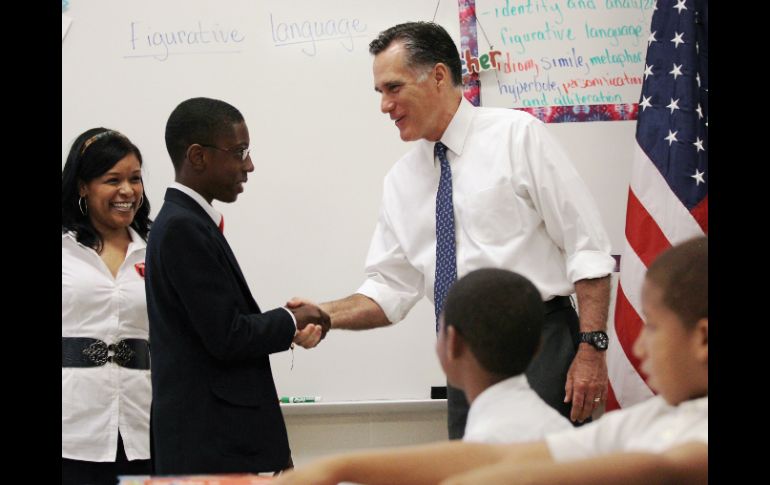 Internacional | Participó en una mesa redonda con estudiantes y líderes cívicos Visita Romney escuela de Filadelfia para promover su política educativa Bajo la organización de la escuela Bluford de Filadelfia, el posible candidato republicano participó en una mesa redonda con estudiantes y líderes cívicos Por: EFE 24 de mayo de 2012 - 16:32 hs Mitt Romney, aspirante a la candidatura republicana a la presidencia, en la escuela Bluford, en Filadelfia. AFP / WASHINGTON, ESTADOS UNIDOS (24/MAY/2012).- El probable candidato presidencial republicano en Estados Unidos, Mitt Romney, se dedicó hoy a promover su política educativa durante una visita a una escuela de Filadelfia, donde fue recibido con protestas de partidarios del mandatario Barack Obama. Romney participó en una mesa redonda con estudiantes y líderes cívicos, muchos de ellos afroamericanos, organizada en la escuela Bluford de Filadelfia. "He venido a aprender, obviamente, de personas con experiencias únicas e instructivas", dijo Romney, quien también reconoció la brecha entre las oportunidades educativas que tienen los blancos y el resto de los ciudadanos en Estados Unidos. Estar en el seno de un hogar en el que hay "un papá y una mamá juntos" tiene "un gran impacto" en la educación de los niños, sostuvo Romney, defensor de la familia tradicional. Docenas de vecinos de la zona se concentraron frente a la escuela para protestar por la visita de Romney y expresar su apoyo a Obama, candidato a la reelección en noviembre, según el diario The Washington Post. El exgobernador de Massachusetts ha dedicado esta semana a divulgar su estrategia educativa y ayer en Washington prometió cambiar la educación "tercermundista" que afecta en especial a las minorías en Estados Unidos. Romney alertó de que Estados Unidos vive una "emergencia de educación nacional", en la que el sistema educativo no prepara a los estudiantes para el mercado laboral, y prometió una "audaz política de cambio". La campaña de Romney también lanzó hoy un nuevo anuncio de televisión titulado "Día 1" en el que detalla las acciones que llevará a cabo el primer día que se instale en la Casa Blanca si gana las elecciones: reducir el déficit, hacer frente a la competencia comercial de China y eliminar regulaciones que "matan" al mercado laboral. Mientras, Obama partió hoy de California, donde participó en las últimas horas en varios actos de campaña, hacia Iowa para visitar una zona obrera en Newton y dar un mitin en Des Moines, la capital estatal. El presidente centrará su mitin en recordar al Congreso la importancia de aprobar, entre otras, una ley que beneficia a las empresas de energías limpias con subvenciones impositivas e incentivos a la inversión. Las últimas encuestas muestran un empate en intención de voto entre Obama y Romney para las elecciones presidenciales de noviembre. Obama tiene una leve ventaja sobre Romney en los estados de Florida, Ohio y Virginia, que pueden ser decisivos en noviembre, según un sondeo de la cadena NBC dado a conocer hoy. Temas Norte América Elecciones EU Estados Unidos Republicanos Lee También Chivas y América calientan en redes el Clásico Nacional de la Fecha FIFA ALERTA en Jalisco por formación de ciclón "Raymond" Esta es la última guerra que Trump resolvió, según él mismo Las guerras que Trump dice haber resuelto y por las que merece el Nobel Recibe las últimas noticias en tu e-mail Todo lo que necesitas saber para comenzar tu día Registrarse implica aceptar los Términos y Condiciones