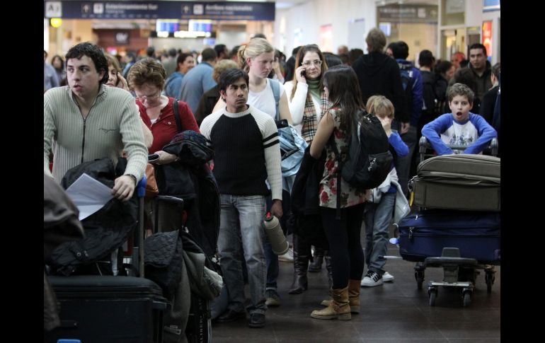 Internacional | Terminales de Aeroparque y Ezeiza están afectados en el flujo aéreo desde junio Vuelven a cancelar vuelos en Argentina por cenizas de volcán chileno Aeropuertos argentinos fueron suspendidos a causa de la ceniza proveniente del sur de Chile Por: REUTERS 8 de julio de 2011 - 07:21 hs Pasajeros aguardan la hora de embarque de sus vuelos. EFE / BUENOS AIRES, ARGENTINA (08/JUL/2011).-Los vuelos en los dos principales aeropuertos de Argentina fueron suspendidos el viernes debido a la presencia de ceniza proveniente del sur de Chile por la erupción de un complejo volcánico. En las terminales de Aeroparque y Ezeiza se encuentra afectado el flujo aéreo desde inicios de junio cuando el complejo volcánico Puyehue-Cordón Caulle entró en erupción, desprendiendo una alta pluma de rocas y cenizas. "Las operaciones planificadas a partir de las siete (10:00 GMT) y hasta las 12 (15:00 GMT) del mediodía de hoy (viernes) se están viendo afectadas, debido a que continúa la presencia de ceniza volcánica", dijo la aerolínea chilena LAN . La nube de cenizas ha obligado a las aerolíneas que operan en Argentina a cancelar decenas de vuelos internacionales, regionales y locales. El jueves, varios vuelos fueron demorados y otros suspendidos. Temas América Latina Volcanes Chile Argentina Aeropuertos Lee También La actualidad de Diego Ochoa, formado en Chivas y destacado en el Mundial Sub-20 José Jerí asume como presidente de Perú Congreso de Perú destituye como presidenta a Dina Boluarte ¿Quiénes son los jugadores a seguir de Argentina Sub-20 de cara al duelo ante México? Recibe las últimas noticias en tu e-mail Todo lo que necesitas saber para comenzar tu día Registrarse implica aceptar los Términos y Condiciones