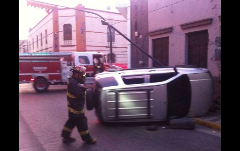 GUADALAJARA, JALISCO (16/DIC/2016).- La volcadura de una camioneta se registró a primeras horas de la mañana de este viernes, reportó la Unidad de Protección Civil y Bomberos de Gudalajara.Los hechos sucedieron el el cruce de las calles Miguel Blanco y Ocampo, en la Zona Centro de Guadalajara.A la llegada de los elementos de la corporación, la camioneta modelo Eco Sport color gris se encontraba volcada sobre su lado derecho.No se reportaron lesionados ya que la camioneta se encontraba vacía pues presuntamente los tripulantes se dieron a la fuga.Hasta el momento se desconocen las causas del incidente que dejó como saldo daños en una de las luminarias de la vialidad.