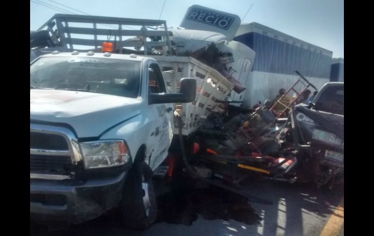 Jalisco | En el incidente participaron cuatro vehículos, hay además tres lesionados Accidente en carretera a Zapotlanejo deja dos muertos En el incidente participaron cuatro vehículos, hay además tres lesionados Por: EL INFORMADOR 3 de diciembre de 2014 - 14:03 hs Por el hecho, prácticamente la circulación en la autopista quedó obstruida. EL INFORMADOR / GUADALAJARA, JALISCO (03/DIC/2014).- Un accidente ocurrido esta tarde sobre la autopista a Zapotlanejo dejó un saldo de dos personas muertas y tres lesionadas. En el incidente participaron cuatro vehículos. El hecho vial sucedió sobre los carriles que van hacia Zapotlanejo justo en el entronque con el Nuevo Periférico. Fue un camión con doble semi-remolque el que se impactó contra tres camionetas en dicho punto, según se presume el chofer del camión habría tenido responsabilidad en los hechos al no conducir con las debidas precauciones en una zona donde se realizaban obras de mantenimiento en la autopista. El vehículo colisionó por detrás a las camionetas para arrastrar junto con los vehículos a trabajadores de la obras. Las personas fallecidas son Braulio López Lomelí, quien quedó atrapado entre los fierros de los vehículos y Juan Manuel Musalén Enriquez, quien al parecer era el ingeniero de la obra; este fue proyectado hacia el frente del accidente. Los lesionados son Juan Carlos García Suárez, Octavio Nava Alvarado y otra persona identificada sólo como Juan Carlos, los tres también trabajadores del sitio. De los lesionados, dos presentaron golpes en la cabeza y uno más fractura de fémur. Por el hecho, prácticamente la circulación en la autopista quedó obstruida y hay varios kilómetros de automóviles detenidos, por lo que se recomienda evitar la zona. Temas Seguridad Accidentes con muertes en Jalisco Muertes Carreteras de Jalisco Lee También Así puedes ganar mil pesos en tu tarjeta de Mi Movilidad Quiso vender a su hijo y terminó detenido por la Fiscalía de Jalisco Yo Jalisco Apoyo para el Transporte entregará nuevas tarjetas este 23 de octubre Acude Fiscalía de Jalisco a ejecutar órdenes de aprehensión en Zapopan y termina en balacera Recibe las últimas noticias en tu e-mail Todo lo que necesitas saber para comenzar tu día Registrarse implica aceptar los Términos y Condiciones