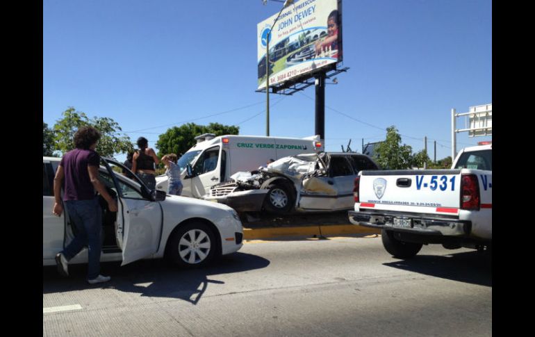 Jalisco | Se habla de una persona fallecida y varios lesionados Accidente vial enfrente de Bugambilias Intenso tráfico de norte a sur por avenida López Mateos Por: EL INFORMADOR 8 de abril de 2012 - 15:57 hs Imagen del accidente. ESPECIAL twitter @FLCarrion. / GUADALAJARA, JALISCO (08/ABR/2012).- Enfrente del fraccionamiento Bugambilias se reporta intenso tráfico, en el sentido de norte a sur por avenida López Mateos. Debido a un accidente vehicular. Se habla de varios lesionados y un fallecido. Temas Accidentes con muertes en Jalisco Vialidad Recibe las últimas noticias en tu e-mail Todo lo que necesitas saber para comenzar tu día Registrarse implica aceptar los Términos y Condiciones
