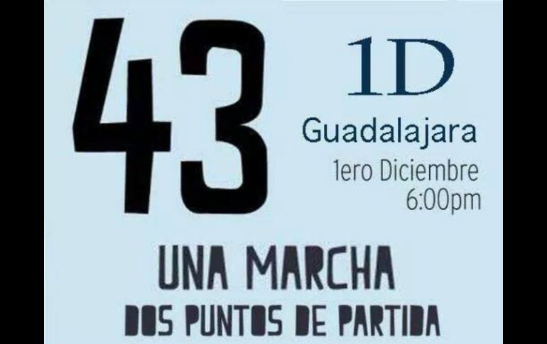 Jalisco | Habrá dos contingentes; uno saldrá de la Expo Gdl y otro del Parque Revolución Alistan marcha en Guadalajara este 1 de diciembre Habrá dos contingentes; uno saldrá de la Expo y otro del Parque Revolución, con rumbo a la Glorieta Niños Héroes Por: EL INFORMADOR 30 de noviembre de 2014 - 18:26 hs Piden a los asistentes que vayan vestidos de negro y lleven veladoras, además de invitarlos a no ir embozados. FACEBOOK / 1D Paro Nacional GUADALAJARA, JALISCO (30/NOV/2014).- A través de las redes sociales se ha convocado a una megamarcha para este 1 de diciembre, la cual se realizará en varios estados del país. En Guadalajara, habrá dos contingentes; uno saldrá de la Expo Guadalajara, mientras otro saldrá desde el Parque Revolución. La cita es a las 18:00 horas de este lunes, y ambas movilizaciones tendrán como punto de llegada la Glorieta de los Niños Héroes. En el evento de Facebook, los organizadores Ayotzinapa Somos Todxs - Jalisco piden a los asistentes que vayan vestidos de negro y lleven veladoras, además de invitarlos a no ir embozados o con máscaras. Hasta el momento, más de tres mil 300 personas han confirmado su asistencia en el evento. EL INFORMADOR / ALEJANDRA GALLARDO Temas Manifestaciones en Jalisco Municipios Guerrero Redes Sociales Lee También Diputados responden a Lemus sobre diálogo por la Reforma Judicial CURP biométrica: ¿Será necesario tramitarla para los programas del Bienestar? Sociales: Che Eguiarte 40’s party Omar "N" tiene al menos dos carpetas de investigación más "en archivo" Recibe las últimas noticias en tu e-mail Todo lo que necesitas saber para comenzar tu día Registrarse implica aceptar los Términos y Condiciones