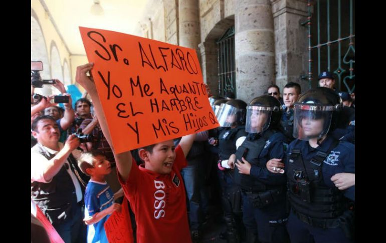 Jalisco | Organizan una segunda manifestación afuera del Ayuntamiento tapatío Ambulantes del Centro advierten que se instalarán mañana Organizan una segunda manifestación afuera del Ayuntamiento tapatío Por: EL INFORMADOR 10 de noviembre de 2015 - 12:59 hs Frente al contingente se ubicaron menores de edad, para exigir a las autoridades ''su Navidad''. EL INFORMADOR / F. Atilano GUADALAJARA, JALISCO (10/NOV/2015).- Si no hay diálogo y de nuevo su voz no es escuchada, el grupo de comerciantes ambulantes del Centro Histórico que este lunes se manifestó afuera del Ayuntamiento de Guadalajara regresará a trabajar. Así lo advirtió la representante del núcleo de ambulantes, Teresita González, quien esta tarde organizó una segunda manifestación afuera del edificio. "Con rifles o lo que sea, pero vamos a tomar nuestros lugares" dijo momentos antes de plantarse afuera del Ayuntamiento, donde aún hay un grupo de manifestantes encadenados. El grupo, sustancialmente menor al de este lunes (son menos de 100), permitió que frente al contingente se ubicarán menores de edad, para que éstos presionaran a las autoridades exigiéndoles "su Navidad". EL INFORMADOR / ISAACK DE LOZA Temas Manifestaciones en Jalisco Ayuntamiento de Guadalajara Municipios Centro Histórico Comercio ambulante Enrique Alfaro Recibe las últimas noticias en tu e-mail Todo lo que necesitas saber para comenzar tu día Registrarse implica aceptar los Términos y Condiciones