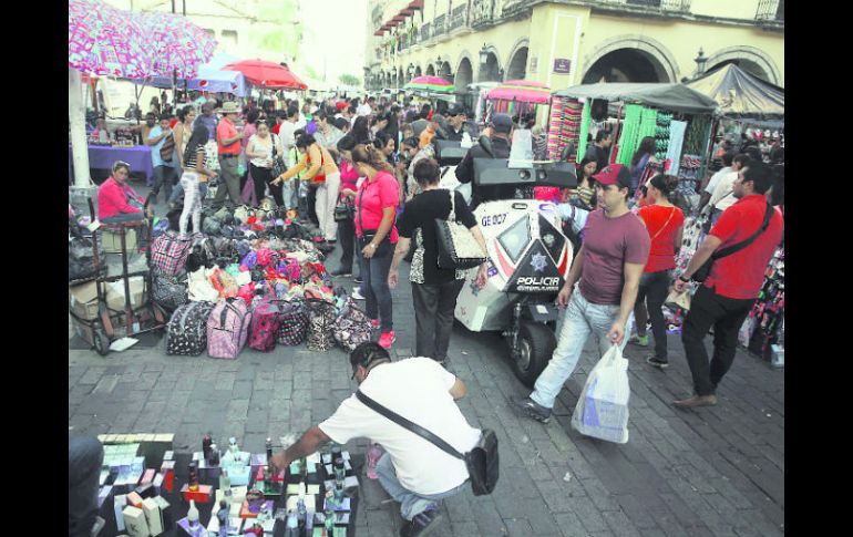 Jalisco | Aprovechan los tumultos de la Romería para evadir a los inspectores del Ayuntamiento Ambulantes hacen su 'agosto' en pleno octubre Guadalajara permitió la instalación de casi mil comerciantes; Zapopan otorgó permisos a 700 personas Por: EL INFORMADOR 12 de octubre de 2015 - 03:21 hs El Centro Histórico de la Perla Tapatía se convirtió prácticamente en un gran centro de ventas informales. EL INFORMADOR / M. Vargas GUADALAJARA, JALISCO (12/OCT/2015).- El Centro Histórico de Guadalajara se convirtió en un tianguis, y los comerciantes ambulantes aprovechan la afluencia de “romeros” para hacer su “agosto” en pleno octubre. De acuerdo con el Ayuntamiento de Guadalajara, sólo 318 comerciantes cuentan con permiso en puestos semifijos que se encuentran ubicados en la plancha de la Plaza de la Liberación. Además, se instalaron 43 juegos mecánicos y 615 puestos de comerciantes ambulantes que cuentan con el aval de la comuna tapatía. Informales “golondrinos”, a sacar ganancias A estos se deben sumar los comerciantes “golondrinos”: Personas que no tienen permiso pero que aprovecharon el cierre de las avenidas Hidalgo y Alcalde para instalarse, a la espera de los funcionarios de inspección a reglamentos, en el operativo del Ayuntamiento tapatío. Por la tarde de ayer se reportó un conato de bronca entre algunos ambulantes, quienes reclamaron que el espacio concedido por la autoridad era menor que lo establecido en el decreto del cabildo que les permitía la instalación en ese día. En el cambio de ruta que se proyectó para la edición 2015 de la Romería, se pudo apreciar el avance en la instalación de los puntos de control de las diferentes dependencias de seguridad y protección civil. Hay quienes aprovecharon el cambio de ruta para sacar vendimias en sus propias cocheras. Es el caso de una tienda de conveniencia ubicada en Américas, casi esquina con Arista. Los empleados sacaron productos alimenticios junto con una caja registradora, para aprovechar la afluencia de los “romeros”. Mientras que la Universidad de Guadalajara colocó vallas metálicas alrededor del edificio administrativo que alberga la Rectoría, además del Museo de las Artes donde se localiza el Paraninfo y los murales de José Clemente Orozco. Los cortes a la circulación comenzaron alrededor de las 17 horas de ayer. Una hora después se llevó a cabo la misa de patrocinio, misma que se celebró en la explanada del Instituto Cultural Cabañas. Señalan rutas de desvío para peregrinos Desde la tarde de este domingo quedaron señaladas las rutas de desvío que tendrán que tomar los peregrinos en su camino a la Basílica de Zapopan. Por ejemplo, a las personas que caminen por Avenida Américas se les recomienda seguir caminando por Jesús García, Isabel Prieto y José María Vigil. Una vez que llegan a las confluencias de Américas y Avenida Patria, los peregrinos tendrán más de tres opciones para continuar su camino: la propia Avenida Américas, la Avenida Ávila Camacho o las calles de la Colonia Altamira. Temas Ayuntamiento de Guadalajara Municipios Centro Histórico Comercio ambulante Romería 2015 Lee También LLUVIA en GDL por la noche, pronóstico del clima para hoy, 9 de octubre INAPAM: ¿Cómo solicitar un turno para consulta médica gratuita? Ticketmaster tiene todos estos conciertos al 2x1 en Monterrey Viene por la tarde la tormenta a Guadalajara Recibe las últimas noticias en tu e-mail Todo lo que necesitas saber para comenzar tu día Registrarse implica aceptar los Términos y Condiciones