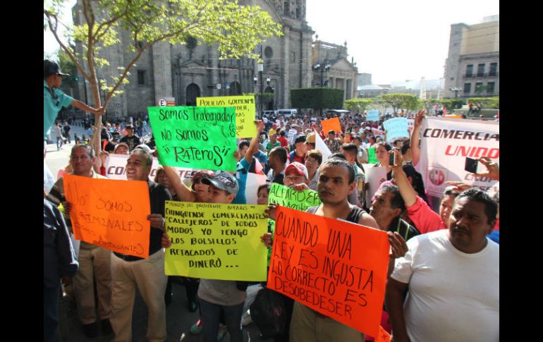 Jalisco | Exigen al alcalde Enrique Alfaro que los deje trabajar en las calles Ambulantes se manifiestan afuera del Ayuntamiento tapatío Dicen que seguirán trabajando a pesar de que Alfaro prometió que el primer cuadro quedaría libre de ambulantes desde mañana Por: EL INFORMADOR 9 de noviembre de 2015 - 09:43 hs Sostienen que su plantón continuará hasta que sean recibidos por Alfaro. EL INFORMADOR / R. Tamayo GUADALAJARA, JALISCO (09/NOV/2015).- Cientos de comerciantes ambulantes, vendedores de artículos navideños, artistas callejeros y locatarios del Baratillo se manifiestan esta mañana a las afueras del Ayuntamiento de Guadalajara para exigir al alcalde Enrique Alfaro que los deje trabajar en las calles. Mientras sesiona el Pleno del Ayuntamiento para discutir reformas al Reglamento para el Funcionamiento de Giros Comerciales, los ambulantes denuncian amenazas en su contra. “Estamos dispuestos a morir en la raya”, aseguró Teresita González Murillo, líder de los comerciantes de los dos templos. “Yo prefiero eso que morir de hambre”. Murillo aseguró que seguirán trabajando este martes a pesar de que Alfaro prometió que el primer cuadro quedaría libre de ambulantes desde mañana. “No somos delincuentes, somos comerciantes”, afirmó y sostuvo que su plantón continuará hasta que sean recibidos por Alfaro. Por su parte Arturo Vega, vocero de los vendedores de animales del Baratillo desmintió que haya cambiado de giro como aseguró el alcalde tapatío que compartió ayer una imagen del comerciante atendiendo un puesto de tortas ahogadas. “Si me puse a vender tortas, fue porque no tenía para comer “, aseveró. En estos momentos, la entrada del Ayuntamiento es custodiada por elementos antimotines, luego de que algunos comerciantes amenazaran con entrar por la fuerza. EL INFORMADOR / VIRGINIA ARENAS Temas Ayuntamiento de Guadalajara Municipios Centro Histórico Comercio ambulante Enrique Alfaro Lee También Lista de conciertos en Guadalajara que están al 2x1 en Ticketmaster Jueves fresco y con lluvia posible a esta hora en Guadalajara Cierres viales por la Romería 2025 comienzan este jueves Cine al aire libre en Guadalajara: Cartelera del 9 al 12 de octubre Recibe las últimas noticias en tu e-mail Todo lo que necesitas saber para comenzar tu día Registrarse implica aceptar los Términos y Condiciones