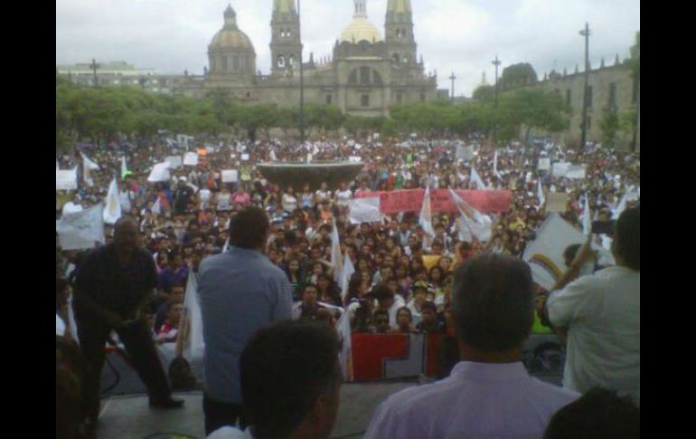 Jalisco | Según cifras de la FEU, se manifestaron 20 mil estudiantes convocados por la Federación Anticipan más marchas contra el aumento a la tarifa Según cifras de la FEU, se manifestaron 20 mil estudiantes convocados por la Federación Por: EL INFORMADOR 23 de agosto de 2012 - 12:14 hs Panorámica de Plaza Liberación durante mitin de los estudiantes. / GUADALAJARA, JALISCO (23/AGO/2012).- Más marchas, las necesarias: anuncia la Federación de Estudiantes Universitarios (FEU). Y Sarmanta Vázquez dice que sí. Es la primera vez que participa en una manifestación y la experiencia le gustó. Ella es una de las estudiantes del tercer semestre en la Escuela Vocacional de la Universidad de Guadalajara (UdeG). "No al aumento" grita la joven de 16 años, quien cuenta que diario toma dos camiones para llegar a clases porque vive en Tlajomulco de Zúñiga. Como Sarmanta hoy marcharon 20 mil estudiantes -según cifras de la FEU-, quienes ya se dispersan y caminan a la Plaza de Armas. En el grupo de Sarmanta están sus amigas Lesly Cabrera y Fernanda Macías, quien asiste con regularidad a las marchas del movimiento Yo Soy 132. El incremento a la tarifa del transporte público entrarán en vigor a partir del 1 de septiembre. Y Sarmanta marchará las veces que sea necesario, dice la joven a quien no le gusta salir en las fotos y se cubre con una cartulina verde. Bomberos calculan 12 mil estudiantes La cifra final de entre 10 y 12 mil participantes fue confirmada por los organizadores y el personal de Bomberos del Ayuntamiento de Guadalajara. Los estudiantes, que salieron de la Fuente Olímpica, fueron los más agresivos con sus compañeros. "El problema son los Poli", decían los jóvenes, quienes reciban los golpes de los objetos lanzados por los universitarios. También comenzaron a pelearse entre ellos a su llegada a la Plaza Liberación, donde ignoraron el discurso oficial de los líderes de la FEU. EL INFORMADOR / MAYRA TORRES Temas Manifestaciones en Jalisco Aumento transporte público Vialidad FEU EL TEMA INFORMADOR Lee También Pacificar: verbo en disputa Charros gana un juego lleno de drama, apagones y lluvia en Mexicali Impulsan transporte en colonias de Huentitán Astros de Jalisco domina y empata la serie ante los Diablos Rojos Recibe las últimas noticias en tu e-mail Todo lo que necesitas saber para comenzar tu día Registrarse implica aceptar los Términos y Condiciones