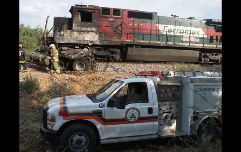 Jalisco | Hay tres lesionados graves Aparatoso choque cobra la vida de dos personas Por quererle ganar el paso al tren, un hombre que manejaba un tráiler provocó un accidente Por: EL INFORMADOR 12 de junio de 2010 - 04:38 hs La fricción del arrastre de los restos del tráiler por la locomotora provocó que ambos vehículos se incendiaran. ESPECIAL / CIUDAD GUZMÁN, JALISCO (12/JUN/2010).- Por quererle ganar el paso al tren, un hombre que manejaba un tráiler provocó un accidente en el que perdió la vida al igual que su acompañante, además provocó lesiones a tres personas más. Los hechos se registraron sobre la carretera libre Guadalajara–Ciudad Guzmán, a la altura del Municipio de Techaluta, lugar donde el chofer del carguero intentó ganarle el paso al tren, provocando que el tren cargado con 40 vagones lo arrastrara por más de 800 metros. El fuerte impacto provocó que dos personas que, presumiblemente, viajaban en el tráiler salieran disparadas de la cabina y fallecieran instantáneamente; se trata de dos adultos: un hombre y una mujer, de los cuales aún se desconocen sus identidades. La fricción del arrastre de los restos del tráiler por la locomotora provocó que ambos vehículos se incendiaran y que tres maquinistas que viajaban en el tren resultaran con graves lesiones y quemaduras, por lo que de inmediato personal de Protección Civil del Estado les prestó atención médica pre hospitalaria, para posteriormente ser enviados de urgencia al Hospital General del IMSS en Ciudad Guzmán para su mejor atención. El incendio consumió completamente los restos del camión accidentado, un tráiler de la marca Volvo en color blanco, con placas 043EK-9, además de la caja de dicho camión y la locomotora número 3801 de la empresa Ferromex. A causa del accidente la circulación en la vía del tren quedó inhabilitada. Al lugar, también acudió la Cruz Roja y Protección Civil de Sayula. Temas Seguridad Accidentes con muertes en Jalisco Muertes Recibe las últimas noticias en tu e-mail Todo lo que necesitas saber para comenzar tu día Registrarse implica aceptar los Términos y Condiciones