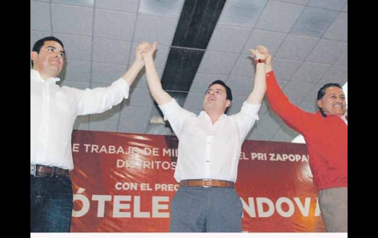Jalisco | El precandidato tricolor a la gubernatura recibe apoyo de militantes en Zapopan Aristóteles Sandoval descarta fracturas al interior del PRI El precandidato tricolor a la gubernatura recibe apoyo de militantes en Zapopan Por: EL INFORMADOR 3 de febrero de 2012 - 02:21 hs Aristóteles (centro) estuvo acompañado por Héctor Vielma y Arturo Zamora (derecha). / GUADALAJARA, JALISCO (03/FEB/2012).- El precandidato del PRI a la gubernatura, Aristóteles Sandoval, descartó ayer que existan fracturas al interior del partido y consideró normales los jaloneos de los distintos grupos de cara al proceso electoral. La pugna que se ha originado en los comités del PRI de Guadalajara y Zapopan son procesos típicos cuando se está en la lucha, afirmó. “El partido definirá cuál será el método o el proceso, ya están establecidos los tiempos, ya están establecidos los procesos y debemos salir muy unidos”. Dijo que se debe de tomar en cuenta la voz de la militancia, porque las imposiciones ya no existen en el PRI. Aristóteles asistió ayer a una reunión con militantes priistas de Zapopan en el Auditorio del Sindicato de Trabajadores Académicos de la Universidad de Guadalajara, donde estuvo acompañado por Héctor Vielma y Arturo Zamora. Temas Municipios PRI Jalisco Aristóteles Sandoval Elecciones Jalisco 2012 Lee También Morena Jalisco respalda Reforma Judicial Comienza en Jalisco la Campaña Nacional de Vacunación de invierno Charros de Jalisco buscará frenar su racha negativa en juegos inaugurales de la LMP Autos con estas placas deben realizar la Verificación Vehicular antes del 31 de octubre Recibe las últimas noticias en tu e-mail Todo lo que necesitas saber para comenzar tu día Registrarse implica aceptar los Términos y Condiciones