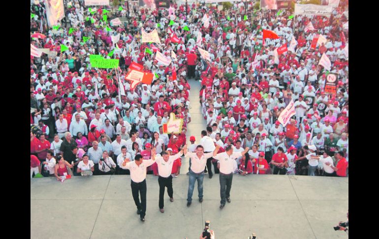 Jalisco | Sandoval dice que los recursos se obtendrían reduciendo los salarios a los funcionarios Aristóteles promete transporte gratuito a estudiantes También prometió dotar de agua potable y alcantarillado a las zonas tonaltecas que no tienen acceso a estos servicios. Por: EL INFORMADOR 30 de mayo de 2012 - 02:57 hs Aristóteles Sandoval visitó ayer la Colonia Jalisco, en Tonalá. ESPECIAL / TONALÁ, JALISCO (30/MAY/2012).- En la Colonia Jalisco, el candidato del PRI a la gubernatura, Aristóteles Sandoval, se comprometió a que el Estado pagará el transporte a estudiantes. “Si tenemos jóvenes educados, vamos a formarlos para que tengan mejor empleo. Eso es lo que quiero para Jalisco. Porque hoy ¿cuánto pagan padres de familia que tienen dos o tres hijos?”. También prometió dotar de agua potable y alcantarillado a las zonas tonaltecas que no tienen acceso a estos servicios. En la plaza San Gerardo, repleta principalmente de grupos de distintas colonias organizados por líderes priistas que apoyan a Jorge Arana, candidato a la alcaldía de Tonalá, Aristóteles Sandoval mencionó que los recursos se obtendrían reduciendo el salario de los funcionarios, “empezando el del gobernador, se reducirá el dinero para viáticos y se va a invertir para el pueblo”. Resaltó que los días del PAN en el Gobierno están contados, “pero el cambio está en sus manos, necesitamos que salgan a votar para apoyarnos”. Al acto proselitista asistieron los candidatos a diputados local y federal, Nicolás Maestro y Sergio Chávez, respectivamente, y Jorge Arana, que va por la alcaldía de Tonalá. Los vecinos de la Colonia Jalisco llegaron a la plaza San Gerardo con pancartas verdes que decían PNM. Algunos desconocían el significado de las siglas, otros decían que era el partido de Jorge Arana o que significaba simplemente el Peña Nieto Mexicano. Entre los asistentes gritaban especialmente a Jorge Arana, quien resaltó que en Tonalá están las colonias más pobres, “del otro lado, cruzando el Parque Solidaridad, es Guadalajara y las calles están pavimentadas, y de este lado son de pura tierra. Los tonaltecas somos tan de primera como los de Guadalajara”. FRASE"Si tenemos jóvenes educados, vamos a formarlos para que tengan mejor empleo "Aristóteles Sandoval, candidato del PRI a la gubernatura. Temas PRI Jalisco Aristóteles Sandoval Elecciones Jalisco 2012 Lee También ¿Dónde vacunarán en Jalisco ante la llegada del frío? Muere José Manuel Gómez Vázquez Aldana: el arquitecto que ayudó a construir la modernidad tapatía Localizan cuerpo en Tlaquepaque Vinculan a mujer que explotaba sexualmente a su hija en Tlajomulco Recibe las últimas noticias en tu e-mail Todo lo que necesitas saber para comenzar tu día Registrarse implica aceptar los Términos y Condiciones