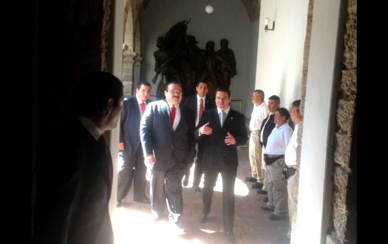 Jalisco | Sandoval Díaz se dirige al Cabañas para dar su primer discurso como gobernador Aristóteles recorre Palacio de Gobierno estatal El gobernador realiza un recorrido en Palacio de Gobierno y después entra a su despacho Por: EL INFORMADOR 1 de marzo de 2013 - 10:08 hs Aristóteles Sandoval Díaz, durante su recorrido por el interior del Palacio de Gobierno de Jalisco. / GUADALAJARA, JALISCO (01/MAR/2013).- Luego de haber tomado protesta como gobernador del Estado de Jalisco, Jorge Aristóteles Sandoval Díaz, concedió una breve entrevista fuera del Congreso local, en donde informó que las actividades iniciarán desde hoy. El ahora gobernador caminó dos cuadras para ingresar al inmueble, donde estuvo acompañado de Jorge Carlos Ramírez Marín, Secretario Federal de la Reforma Agraria y quien viajó en representación del Presidente de la República, Enrique Peña Nieto. Ahí, los dos funcionarios estuvieron en el patio central, conocieron el monumento en honor a Guillermo Prieto, que reza la frase legendaria que le salvó la vida a Benito Juárez, y que dice "Los Valientes no asesinan". "Muy contento, a trabajar, a dar resultados; pues vamos a visitar a los distintos municipios y regiones del Estado". Aristóteles se paraba para saludar al personal de limpieza, a los guardias y a los oficinistas que hasta este día laboran en este que hoy en día es el Museo de Sitio de Palacio. Los funcionarios, resguardados en todo momento por personal de seguridad, conocieron el patio de los Naranjos y la antigua sala del Congreso. Aristóteles Sandoval y su acompañante se detuvieron en el descanso de las escalinatas que están flanqueadas por los murales de José Clemente Orozco, y aunque el gobernador no dio declaraciones sobre el estado en que encontró las oficinas, lo cierto es que dentro de sus promesas de campaña estuvo que él regresaría a despachar a este edificio localizado en la calle Corona, en el corazón de la ciudad. Comentó que en unas horas volará hacia el municipio de Bolaños, en donde se firmará un convenio para la construcción de un hospital que atienda a la población de la Zona Norte de Jalisco, así como el inicio de la construcción de una estancia infantil. "Esta zona, que ha estado tan olvidada los últimos años en el Estado". Momentos antes de las 11 de la mañana, Aristóteles Sandoval ingresó al despacho designado para el mandatario jalisciense. Ahí estuvo por lo menos 20 minutos. Acto seguido, descendió por una de las puertas traseras, subió a su vehículo y se encamino al Instituto Cultural Cabañas, donde se desarrolló el primer mensaje a la población ya como gobernador constitucional del Estado. EL INFORMADOR/ THAMARA VILLASEÑOR / OMAR GARCÍA Temas Gobierno del Estado Aristóteles Sandoval EL TEMA INFORMADOR Toma de protesta Lee También Un país donde la salud mental no existe en el presupuesto México reacciona a acuerdo de paz entre Israel y Hamás "La Mañanera" de Sheinbaum de hoy viernes 10 de octubre de 2025 El efecto Donald Trump Recibe las últimas noticias en tu e-mail Todo lo que necesitas saber para comenzar tu día Registrarse implica aceptar los Términos y Condiciones