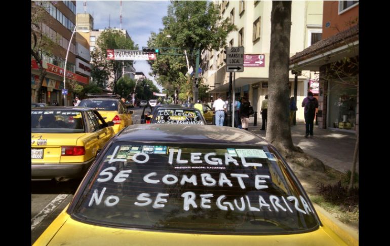 Jalisco | Piden a diputados locales y que no regulen a servicios como Uber y a City Drive Arranca protesta de taxistas en la ZMG La organización Taxistas Unidos de Jalisco ya arranca la manifestación desde cinco puntos de la ciudad Por: EL INFORMADOR 8 de marzo de 2016 - 09:03 hs Taxistas tradicionales inician la mega marcha rumbo al Congreso del Estado. EL INFORMADOR / A. García GUADALAJARA, JALISCO (08/MAR/2016).- Taxistas tradicionales iniciaron la mega marcha rumbo al Congreso del Estado para presionar a los diputados locales y que no regulen a servicios como Uber y a City Drive, a los que consideran “piratas” y al margen de la ley. La organización Taxistas Unidos de Jalisco ya arrancó la manifestación desde cinco puntos de la ciudad. A las 09:50 horas el primer contingente salió del Parque Metropolitano y circula rumbo al Centro Histórico, según reportes de la Secretaría de Movilidad. En el cruce de la Calzada Independencia y Juárez unos 500 taxista están listos para arrancar el recorrido, están esperando que sus compañeros de puntos más lejanos como Las Águilas y el Metropolitano avancen para llegar todos juntos. En el cruce de la Calzada Salvador López Chávez y González Gallo ya se concentran 230 taxis y la fila se alarga hasta la calle Río de la Barca en los tres carriles del lado izquierdo, por lo que la vialidad se empieza a entorpecer. En la Plaza de Toros unos 350 carros ya están listos para empezar a circular rumbo al Congreso de Jalisco. Del sitio 40 en Las Águilas ya marchan por la avenida López Mateos unos 200 taxistas. EL INFORMADOR / GUADALUPE TREWARTHA Temas Congreso local Manifestaciones en Jalisco Centro Histórico Taxistas de Jalisco Secretaría de Movilidad Uber Lee También Charros de Jalisco inaugura la temporada de invierno de beisbol Brenda Carrera rinde primer informe legislativo Tarde soleada para Guadalajara; no se descarta lluvia Asesinan a balazos a una mujer en Tlaquepaque Recibe las últimas noticias en tu e-mail Todo lo que necesitas saber para comenzar tu día Registrarse implica aceptar los Términos y Condiciones
