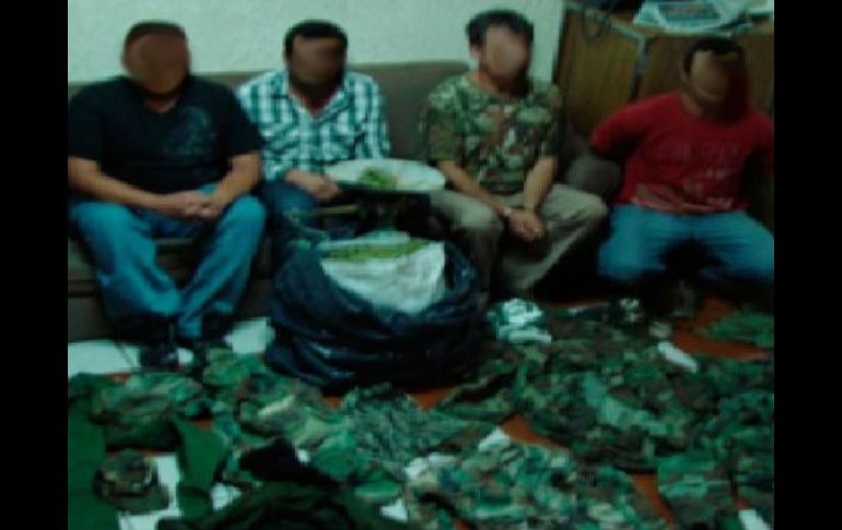 Jalisco | San Juan de los Lagos Arrestan a cuatro narcomenudistas; les aseguran uniformes tipo militar Los detenidos tenían su centro de operaciones en una finca de la Zona Centro Por: EL INFORMADOR 2 de marzo de 2011 - 04:22 hs Los detenidos son investigados por el comercio de drogas en la Zona Altos Norte de la Entidad. ESPECIAL / SAN JUAN DE LOS LAGOS, JALISCO (02/MAR/2011).- Cuatro hombres son investigados por la Procuraduría General de la República ( PGR) debido a que los sorprendieron con uniformes tipo militar y droga en el municipio de San Juan de los Lagos. La fiscalía federal inició la averiguación previa correspondiente en contra de Ismael Omar Hernández Ramírez, alias “El Payito”; Joren Surisaddai Márquez Vallejo, Luis Humberto González Ruiz y Jaime Martínez Barba, por su presunta responsabilidad en la comisión de un delito contra la salud en su modalidad de posesión de mariguana y metanfetamina con fines de comercio. La PGR explicó que agentes federales al encontrarse realizando investigaciones contra el narcomenudeo en el citado municipio, detuvieron a los indiciados debido a que les encontraron 10 kilos 600 gramos de mariguana, 19 dosis de metanfetaminas con un peso de 28 gramos y 21 mil 280 pesos como productos de las ventas. Lo decomisado y los hombres fueron puestos a disposición de un fiscal de la Federación quien decidirá su situación legal. Decomiso de artículos y vehículos • Tres uniformes tipo militar. • Ocho gorras camufladas. • Un impermeable tipo militar. • Dos mochilas camufladas tipo militar. • Un pasamontañas de color negro. • Un auto Mini Cooper de color verde, sin placas de circulación. • Una camioneta Ford pick up, con placas JN-17180. Temas Seguridad Narcotraficantes Detenidos en Jalisco Recibe las últimas noticias en tu e-mail Todo lo que necesitas saber para comenzar tu día Registrarse implica aceptar los Términos y Condiciones