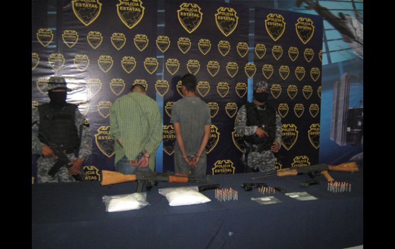 Jalisco | Podrían estar relacionados con la ejecución del director de la Policía de Mexticacán Arrestan a dos hombres armados en Tepatitlán Policía del Estado arresta a quienes presuntamente son miembros de una célula criminal que se caracteriza por descuartizar a sus víctimas Por: EL INFORMADOR 28 de octubre de 2010 - 11:25 hs Montoya Palma y Preciado Gutiérrez fueron consignados ante la PGR para ser investigados. O. RUVALCABA / TEPATITLÁN, JALISCO (28/OCT/2010).- Elementos de la Policía del Estado arrestaron anoche a José Armando Montoya Palma, de 46 años de edad, y Salvador Preciado Gutiérrez, de 27, quienes presuntamente son miembros de una célula criminal que se caracteriza por descuartizar a sus víctimas. Ellos fueron detectados sobre la carretera Tepatitlán-Pegueros, a la altura con el entronque de la autopista Guadalajara- Lagos de Moreno, cuando viajaban en un auto Stratus, en color negro, con placas JAG 65 99. Al ser revisados, les aseguraron una pistola calibre 9 milímetros abastecida con diez balas, dos fusiles AK-47, y 54 balas, además de un kilo y medio de una composición química que hasta el momento se ignora qué droga sea. De acuerdo con las primeras investigaciones de la Policía estatal, ambos hombres podrían estar relacionados con la ejecución del director de la Policía de Mexticacán, Mario Mejía Ruvalcaba, ocurrida el pasado 13 de octubre. Montoya Palma y Preciado Gutiérrez fueron consignados ante la Procuraduría General de la República para ser investigados por la posesión de armas de uso exclusivo del Ejército, y su presunta participación en el asesinato del mando policiaco. EL INFORMADOR / OMAR RUVALCABA Temas Seguridad Decomisos de droga en Jalisco Detenidos en Jalisco Portación de armas en Jalisco Lee También Omar 'N' es vinculado a proceso por presunto abuso sexual infantil agravado Inicia entrega de tarjetas Pensión Mujeres Bienestar en Jalisco; ¿cómo y dónde recogerla? DIF Jalisco impulsa campaña de adopciones de niñas, niños y adolescentes Detienen a Lex Ashton 'N' por homicidio y tentativa de homicidio Recibe las últimas noticias en tu e-mail Todo lo que necesitas saber para comenzar tu día Registrarse implica aceptar los Términos y Condiciones