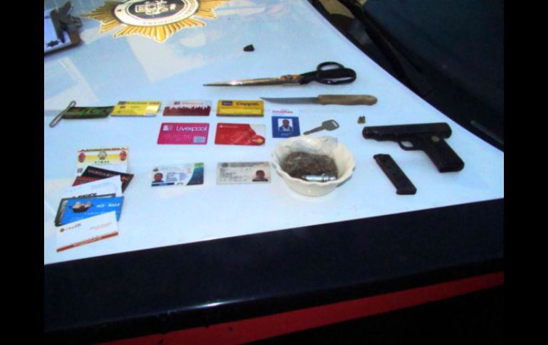 El indiciado es Víctor Manuel González López de 40 años de edad, con domicilio en la colonia Jardines de Guadalupe. La Policía Municipal, informó que acudieron al cruce de las calles Diego Cuentas y Del Duende, donde se había reportado la agresión a una mujer de la tercera edad por parte de su hijo. En una finca de ese cruce, los municipales encontraron a Víctor Manuel en la puerta, con una pistola, en su mano derecha, y bajo los efectos de las drogas, manteniéndose agresivo hasta que fue sometido y despojado de una arma del calibre .380, abastecida con dos balas. La madre de él, Rosa María, les permitió entrar a la vivienda, donde puso a su disposición tarjetas e identificaciones robadas por su hijo. Tras esto, los policías municipales, acudieron a un domicilio de una de las víctimas, y quien reconoció al indiciado, como la persona que los había robado durante la semana pasada, y que utilizó el arma de fuego. Posteriormente, el sujeto fue puesto a disposición de la Fiscalía Central de Jalisco para ser investigado por el robo de las tarjetas y por haber golpeado a su madre.