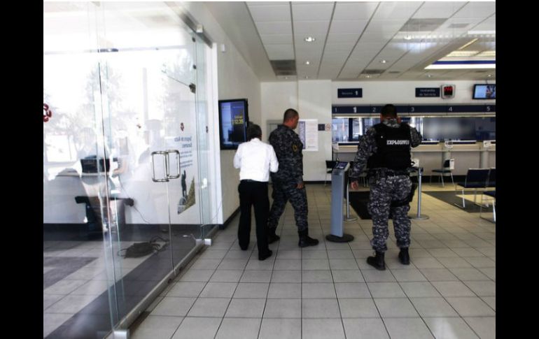 Jalisco | Se estima que el monto de lo robado es de mil pesos Asaltan banco en la colonia San Juan Bosco El atraco ocurrió dentro de una tienda departamental al cruce de las calles 54 e Industria Por: EL INFORMADOR 27 de abril de 2012 - 19:01 hs Agentes de la PGJE iniciaron las investigaciones del caso. / GUADALAJARA, JALISCO (27/ABR/2012).- Un asalto bancario más se registró en la Zona Metropolitana de Guadalajara (ZMG), los hechos ocurrieron en una sucursal ubicada en el barrio de San Juan Bosco, en Guadalajara. De acuerdo con el reporte de la Policía de Guadalajara, el banco se encuentra instalado dentro de una tienda departamental ubicada en el cruce de las calles 54 e Industria. Se explicó que al inmueble ingresó un hombre armado y se dirigió a una de las ventanillas de la casa financiera y tras amagar con un arma de fuego al empleado, se apoderó del efectivo. Apesar de la pronta respuesta de los policías municipales, el ladrón logró escapar del banco a bordo de una motocicleta. Posteriormente acudieron agentes de la Procuraduría General de Justicia del Estado (PGJE) que iniciaron las investigaciones del caso. De acuerdo con fuentes extraoficiales, se presume que el monto de lo robado asciende a los mil pesos. Arrestan a un "conejero" Elementos de la Policía tapatía lograron detener a un hombre que asaltó a una mujer, cuando ella salía de un banco ubicado en la Colonia La Moderna. Tras el atraco, la víctima se comunicó con la Policía Municipal, y en pocos minutos llegaron un par de patrullas para auxiliarla. Los oficiales entrevistaron a la mujer afectada, quien proporcionó las características del asaltante y tras buscarlo por calles de la citada colonia, fue detenido en el cruce de Francia y Rayón. El hombre se identificó como Livni García Pérez, de 22 años, a quien le aseguraron un desarmador que utilizó en el asalto y seis mil 500 pesos propiedad de mujer. El hombre fue puesto a disposición de la Procuraduría estatal para ser investigado. EL INFORMADOR / OMAR RUVALCABA Temas Seguridad Bancos PGJE Lee También Detienen a hombre tras persecución en Tlaquepaque Pensión ISSSTE: Beneficiarios que NO recibirán aguinaldo 2025 Localizan cuerpo en Tlaquepaque Vinculan a mujer que explotaba sexualmente a su hija en Tlajomulco Recibe las últimas noticias en tu e-mail Todo lo que necesitas saber para comenzar tu día Registrarse implica aceptar los Términos y Condiciones