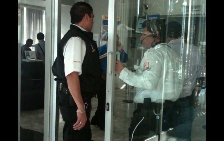 Jalisco | Tres hombres atracan un banco en la colonia Mirador del Sol Asaltan otro banco en la ZMG Tres hombres atracan un banco en la colonia Mirador del Sol; se apoderan de aproximadamente 90 mil pesos Por: EL INFORMADOR 26 de junio de 2013 - 16:37 hs Agentes de la Fiscalía y personal del IJCF acudieron a realizar las primeras investigaciones del caso. ARCHIVO / ZAPOPAN, JALISCO (26/JUN/2013).- Tres hombres asaltaron un banco instalado en la colonia Mirador del Sol de Zapopan, apoderándose de aproximadamente 90 mil pesos. Con este atraco, ya suman 55 asaltos en este 2013, en la Zona Metropolitana de Guadalajara (ZMG). Los hechos ocurrieron la tarde este miércoles, en una institución financiera ubicada en el cruce de avenida Patria y la calle Monte Falco. De acuerdo con un mando de la Policía Municipal de Zapopan, al lugar ingresaron tres hombres, uno de ellos armado y otro con una mancuerna. Se detalló que uno de ellos se quedó al ingreso del establecimiento para impedir la salida o ingreso de personas, mientras que otro cómplice quebró algunos vidrios de las ventanillas. Tras esto, el tercer delincuente recolecto el dinero y finalmente escaparon corriendo. Posteriormente, acudieron agentes de la Fiscalía Central de Jalisco y personal del Instituto Jalisciense de Ciencias Forenses quienes realizaron las primeras investigaciones del caso. Dentro del banco, se encontró algunas manchas de sangre y que presuntamente pertenecen a uno de los delincuentes, además aseguraron una prenda de vestir que pertenecía a uno de los ladrones. Temas Seguridad Asalto bancario Fiscalía de Jalisco (FGE) Lee También Sigue el festejo en Guadalajara Rescatan a mujer víctima de secuestro virtual en Teocaltiche Esto costará el Gas LP en Jalisco en la semana del 20 al 25 de octubre Astros de Jalisco desafía al vigente campeón en la final de zona de la LNBP Recibe las últimas noticias en tu e-mail Todo lo que necesitas saber para comenzar tu día Registrarse implica aceptar los Términos y Condiciones
