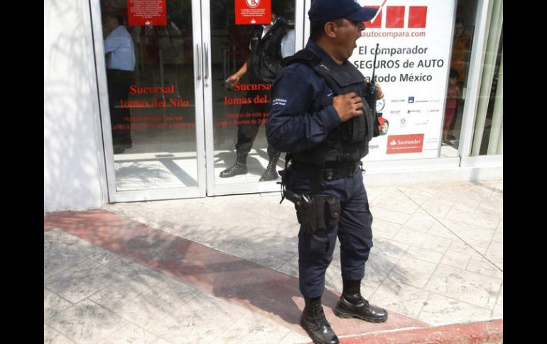 Jalisco | Se trata del atraco número 71 de este 2013 Asaltan otro banco en la ZMG Un sujeto realiza el asalto bancario número 71 de este 2013 en Jalisco Por: EL INFORMADOR 11 de julio de 2013 - 11:43 hs Un sólo hombre armado protagonizó un asalto bancario, por lo que ya suman 71 atracos en este 2013. ARCHIVO / GUADALAJARA, JALISCO (11/JUL/2013).- Un sólo hombre armado protagonizó un asalto bancario, por lo que ya suman 71 atracos en este 2013, en el Estado. La sucursal bancaria afectada se encuentra ubicada en el cruce de la Calzada Independencia y la calle Huascarán, en la colonia Independencia Poniente de Guadalajara. De acuerdo con informes de la Policía Municipal, a banco ingresó un sujeto armado, y con agresividad, posteriormente, se acercó a una de las cajas del banco para exigir el efectivo al empleado, el cual fue depositado en una mochila que llevaba el ladrón. Tras esto, el sujeto salió de la institución bancaría y abordó una motocicleta, y logró escapar del lugar. Aunque acudieron elementos de la Policía Municipal al banco en busca del individuo, éste logró escapar. Posteriormente, acudieron agente de la Fiscalía Central de Jalisco y personal del Instituto Jalisciense de Ciencias Forenses (IJCF), quienes iniciaron con las investigaciones del caso. Temas Seguridad Asalto bancario Lee También Detienen a presunto extorsionador del sector limonero en Michoacán Inicia el Semestre Semilla en beneficio de las hijas e hijos de policías de Jalisco Aseguran vehículo "Monstruo" en Teocaltiche Pasos para tramitar permiso de instalar vidrios polarizados en tu coche Recibe las últimas noticias en tu e-mail Todo lo que necesitas saber para comenzar tu día Registrarse implica aceptar los Términos y Condiciones