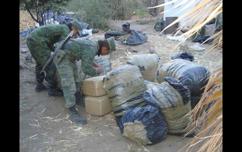 Jalisco | En otro despliegue capturan a un hombre en Zapopan con armamento Aseguran 4.8 kilogramos de crystal en el aeropuerto tapatío En otro despliegue capturan a un hombre en Zapopan con armamento Por: EL INFORMADOR 26 de febrero de 2011 - 04:10 hs Los soldados localizaron 600 kilos de mariguana abandonada en la comunidad de Apozolco. ESPECIAL / GUADALAJARA, JALISCO (26/FEB/2011).- En tres diferentes operativos, realizados por elementos de la Secretaría de la Defensa Nacional ( Sedena), se logró el decomiso de droga sintética conocida como crystal, y mariguana, además sorprendieron a una persona que fue denuncia de forma anónima por la portación de armas de fuego y una granada. El primer caso se registró en el Aeropuerto Internacional de Guadalajara Miguel Hidalgo, donde soldados de la Quinta Región Militar junto con elementos de la Policía Federal, localizaron un mueble de madera con un doble fondo, mismo que al desarmarlo encontraron que en el doble fondo había cuatro kilos 865 gramos de crystal. El “paquete” había sido enviado a través de una empresa de envíos y paquetería desde la ciudad de Uruapan, en el Estado de Michoacán, y tenía con destino Tijuana, en Baja California. En el segundo operativo, los militares, en un recorrido de vigilancia habitual por la comunidad de Apozolco, en el municipio de San Martín de Bolaños, localizaron 600 kilos de mariguana dentro de una finca abandonada. En el tercer despliegue, las fuerzas castrenses recibieron una denuncia anónima en la que manifestaban de la presencia de un hombre en actitud sospechosa con armas, cuyo domicilio está ubicado sobre la Avenida Enrique Díaz de León al cruce con Lomas del Camino, en la colonia Lomas de Atemajac, del municipio de Zapopan. Fue alrededor de las 0:30 horas de ayer, cuando los militares acudieron a la finca de José Ramón Chávez Figueroa, de 44 años de edad, quien dijo ser originario del Estado de México, para arrestarlo. Tras el operativo al hombre le aseguraron un fusil de asalto tipo AK–47, de los conocidos como “cuerno de chivo”; una granada de fragmentación, cinco cargadores de diferentes calibres y 200 tiros útiles de diversos calibres. Minutos después de ser sorprendido, Chávez Figueroa fue trasladado hasta las instalaciones de la Procuraduría General de la República (PGR), por al menos 20 soldados que se desplazaron en cuatro automotores. En los tres casos, lo decomisado fue puesto a disposición de un agente del Ministerio Público de la Federación de la PGR para su investigación. Temas Seguridad Operativos de Seguridad Decomisos de droga en Jalisco Recibe las últimas noticias en tu e-mail Todo lo que necesitas saber para comenzar tu día Registrarse implica aceptar los Términos y Condiciones