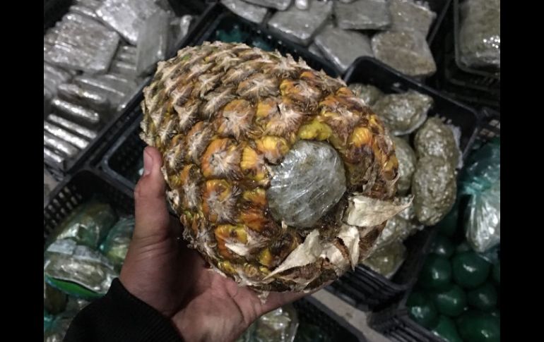 TLAJOMULCO DE ZÚÑIGA, JALISCO (15/NOV/2016).- En una investigación para desarticular una organización criminal dedicada principalmente al tráfico de armas y droga, la Procuraduría General de la República (PGR) en coordinación con elementos de la Policía Federal cumplimentó una orden de cateo en un domicilio ubicado en Tlajomulco de Zúñiga, Jalisco.Como resultado del cateo, se acreditó ante la autoridad judicial que dicho inmueble era utilizado como bodega para la comisión de diversos delitos y se logró el aseguramiento del lugar.En la bodega había diversas cajas de verduras y frutas, tales como aguacates, lechugas y piñas, las cuales contenían en su interior un total aproximado de 100 kilogramos de mariguana. La droga venía oculta en objetos sintéticos simulados como aguacates y en los centros de las lechugas y piñas.El modus operandi de esta organización criminal consistía en ocultar la mariguana en el centro de las referidas frutas y verduras, así como confeccionar aguacates falsos, y mezclarlos en las cajas de dichos productos, para su traslado a los Estados Unidos de América.Asimismo, se detuvo a una persona del sexo masculino que se encontraba en el lugar de los hechos, misma que fue vinculada a proceso y prisión preventiva oficiosa por delitos Contra la Salud.