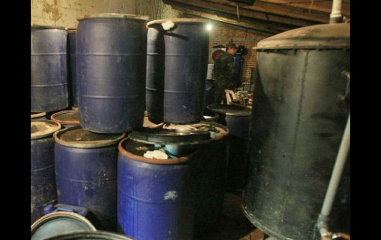 Jalisco | El inmueble fue localizado mediante una denuncia ciudadana Aseguran más de 16 toneladas de químicos en narcolaboratorio en Tapalpa Elementos del Ejército hallaron 16 toneladas de sustancias químicas en laboratorio clandestino con las que se producen drogas sintéticas Por: NTX 6 de mayo de 2011 - 12:21 hs Se aseguraron 15 mil 278 litros de sustancias químicas; 800 kilogramos de acido tartárico y 350 kilogramos de sosa caustica. ARCHIVO / ZAPOPAN, JALISCO (06/MAY/2011).- Elementos de la XV Zona Militar lograron asegurar más de 16 toneladas de sustancias químicas para la elaboración de droga sintética, ubicadas en un laboratorio clandestino en el municipio de Tapalpa. La Secretaría de la Defensa Nacional, por conducto de la 15/a. Zona Militar, informó que el decomiso fue posible en el marco de la aplicación de la Directiva para el Combate Integral al Narcotráfico y la aplicación de la Ley Federal de Armas de Fuego y Explosivos. Detalló que mediante la atención a una denuncia ciudadana los militares realizaron reconocimientos terrestres a inmediaciones del municipio de Tapalpa, localizando una construcción de madera, cubierta con laminas de cartón tipo cabaña. Del lugar emanaba un fuerte olor a químicos, por lo que procedieron la investigación encontrando en el interior tambos color azul y material utilizado para la elaboración de droga sintética. Se aseguraron 15 mil 278 litros de sustancias químicas; 800 Kilogramos de acido tartárico; y 350 Kilogramos de sosa caustica. Así como 94 tambos de plástico con capacidad de 200 litros; 53 tambos metálicos con capacidad de 200 litros; 13 ollas de acero de diferentes capacidades; 11 secadoras; tres cubetas de plástico con capacidad de 20 litros; dos vaporeras con capacidad de 20 litros; y dos bidones con capacidad de 19 litros. Con el aseguramiento de este laboratorio clandestino, suman 27 los que se han destruido en la jurisdicción de la 15/a. Z.M., durante el presente año, así como dos bodegas para almacenar sustancias químicas. Temas Seguridad Decomisos de droga en Jalisco Ejército Narcolaboratorio Lee También Detienen a asesino de joven en partido de futbol ¿Cuál era la relación entre el barco pirata hundido en Vallarta y Colón? Así estará Guadalajara por la tarde; ¿lloverá? Tras persecución policial, localizan 70 kilos de marihuana en Tuxpan Recibe las últimas noticias en tu e-mail Todo lo que necesitas saber para comenzar tu día Registrarse implica aceptar los Términos y Condiciones