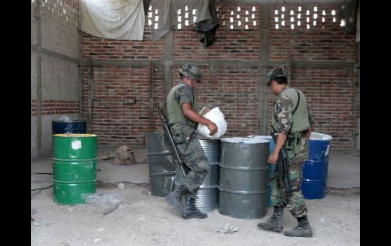 Jalisco | Durante 2011, 37 narcolaboratorios y dos bodegas han sido desmantelados Aseguran militares dos laboratorios clandestinos, droga y armas Se resguardaron cinco toneladas de sustancias, armas y equipo para fabricación de droga sintética Por: NTX 4 de junio de 2011 - 14:23 hs El hallazgo de los laboratorios clandestinos fue posible gracias a la denuncia ciudadana. ARCHIVO / ZAPOPAN, JALISCO (04/jJUN/2011).- En eventos diferentes, personal militar aseguró a una persona, dos laboratorios clandestinos, cinco toneladas de sustancias químicas, un arma de fuego, dos vehículos, cargadores, cartuchos y material diverso en dos municipios. La Secretaría de la Defensa Nacional, por conducto de la XV Zona Militar, informó que los aseguramientos fueron en los municipios de Ojuelos y Tamazula de Gordiano, en el marco de la Estrategia Integral del Estado Mexicano en contra del Narcotráfico y la Delincuencia Organizada. Al realizar reconocimientos terrestres en el poblado 'la Joya de Santana', en el municipio de Tamazula de Gordiano, los militares aseguraron dos laboratorios clandestinos para elaborar droga sintética. Además más de tres toneladas de sustancias químicas, que fueron tres mil 300 kilogramos de producto color cristalino, 100 kilogramos de sosa cáustica y tres kilos 800 gramos de Acido Fenil Acético (AFA). También se aseguraron dos tinas con capacidad de 20 litros, seis alambiques de acero inoxidable con capacidad de 300 y 200 kilogramos y cuatro destiladores de acero inoxidable. En el segundo laboratorio se decomisó más de una tonelada y media de sustancias químicas, mil 700 kilogramos de sustancias químicas color cristalino, 50 kilogramos de sosa cáustica, así como un alambique de acero inoxidable y dos destiladores de acero inoxidable. En tanto, en el municipio de Ojuelos, al realizar patrullamientos en atención a una denuncia ciudadana, sobre la calle 15 de Mayo, del poblado de Matancillas, una persona fue detenida. Además, aseguraron un fusil AK-47 calibre 7.62 por 39 sin marca, siete cargadores, 150 cartuchos, dos vehículos (uno blindado), una fornitura, un radio portátil y una computadora portátil. Con el aseguramiento de los dos laboratorios clandestinos, suman 37 los que se han destruido en la jurisdicción de la XV Zona Militar durante el presente año, así como dos bodegas para almacenar sustancias químicas. Temas Seguridad Sedena Drogas Narcolaboratorio Recibe las últimas noticias en tu e-mail Todo lo que necesitas saber para comenzar tu día Registrarse implica aceptar los Términos y Condiciones