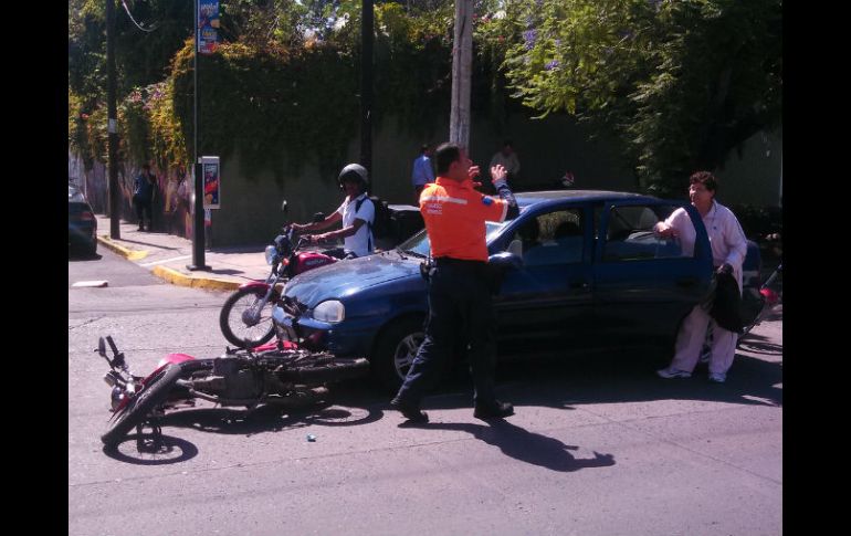 Jalisco | De acuerdo a paramédicos y testigos el motociclista cambiaba constantemente de carril Atropellan a motociclista en Guadalajara, iba rebasando De acuerdo a paramédicos y testigos el motociclista iba cambiando constantemente de carril Por: EL INFORMADOR 16 de mayo de 2014 - 14:39 hs La motocicleta quedo bajo las llantas del Chevy. / GUADALAJARA, JALISCO (16/MAY/2014).- La motocicleta de un hombre quedó atorada entre el suelo y la defensa de un Chevy esta mañana en un carril central de Avenida Américas esquina con calle Reforma, luego de que el automóvil la arrollara a eso de las 11:00 horas de la mañana. De acuerdo a paramédicos de la Cruz Verde, el motociclista alcanzado por el auto resultó con el tobillo derecho posiblemente fracturado y con una "contusión profunda" en el fémur derecho, esto es, un golpe fuerte en el hueso que afortunadamente no devino en fractura. Según testigos y paramédicos de la Cruz Verde, el motociclista circulaba sobre Américas sentido Sur-Norte cambiando constantemente de carriles y rebasando autos. Trató de ganarle el paso al mencionado Chevy, pero no había suficiente distancia para hacerlo y el conductor del compacto no pudo evadirlo, de manera que la parte frontal de su auto impactó la llanta trasera de la moto. Por la velocidad, el motociclista salió proyectado y cayó lesionado a dos metros de distancia, agregó el paramédico, quien aseguró que contaba debidamente con su casco. Sin identificar, el conductor herido de aproximadamente 35 años fue trasladado a la Cruz Verde Delgadillo Araujo mientras que el conductor del auto quedó detenido por la Policía de Guadalajara. Temas Seguridad Accidentes Cruz Verde Lee También Reportan carambola en autopista a Morelia Muere conductor tras choque entre camioneta y camión en Arandas Cabo Verde clasifica y estará en una Copa del Mundo por primera vez en su historia Hamás revela nombres de los cadáveres que entregará a Cruz Roja en Gaza Recibe las últimas noticias en tu e-mail Todo lo que necesitas saber para comenzar tu día Registrarse implica aceptar los Términos y Condiciones
