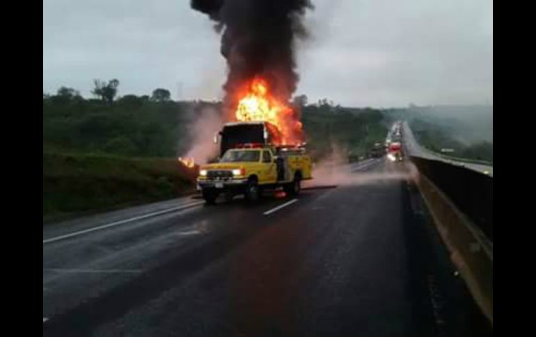 Jalisco | La UEPCyB informa que el conato se presentó en el tramo de Zapotlanejo a Tepatitlán Autobús se incendia sobre autopista a Zapotlanejo La UEPCyB informa que el conato se presentó en el tramo de Zapotlanejo a Tepatitlán Por: EL INFORMADOR 2 de julio de 2016 - 10:59 hs En un tramo cercano, personal de Protección Civil atendió la volcadura de otro vehículo de transporte. ESPECIAL / Protección Civil Jalisco GUADALAJARA, JALISCO (02/JUL/2016).- Un accidente más de un autobús de pasajeros sobre autopista a Zapotlanejo ocurrió esta mañana, cuando se quemó uno en el tramo de Zapotlanejo a Tepatitlán, informó la Unidad Estatal de Protección Civil y Bomberos. Antes de las siete de la mañana circulaba un camión de la empresa Costa Mar a la altura del kilómetro 12 de la citada autopista cuando el chofer detectó problemas en el tablero. Al proceder a la revisión del vehículo se percató que traía una manguera reventada, tras lo que se inició el incendio. Fue que se evacuó de inmediato a todos los pasajeros del transporte. A la espera de personal de Bomberos, el autobús se quemó en su totalidad y los pasajeros resultaron todos ilesos. Estos trasbordaron un camión de la misma empresa y continuaron su trayecto. Las autoridades trabajan en la limpieza del lugar. Temas Seguridad Incendios Accidentes Protección Civil Jalisco Carreteras de Jalisco Zapotlanejo Lee También Muere conductor tras choque entre camioneta y camión en Arandas Temporal de lluvias deja 20 muertos en Jalisco Abre centro de acopio del DIF para afectados por lluvias en Puerto Vallarta Hay más de mil viviendas afectadas por lluvias en Puerto Vallarta: Protección Civil Recibe las últimas noticias en tu e-mail Todo lo que necesitas saber para comenzar tu día Registrarse implica aceptar los Términos y Condiciones