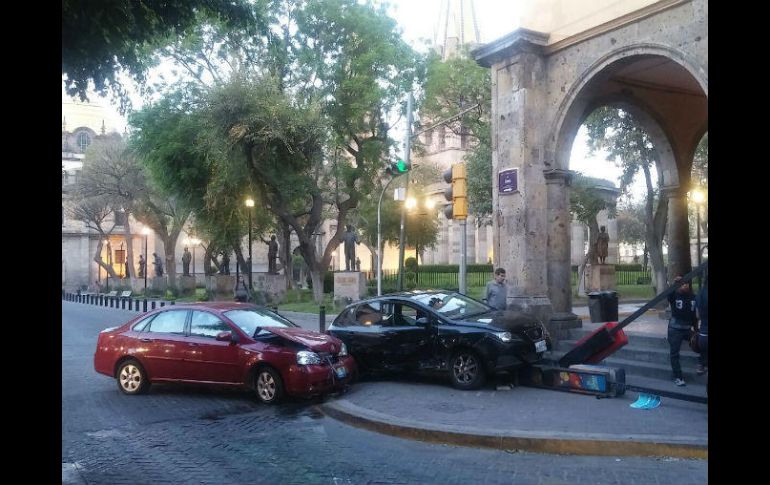 GUADALAJARA, JALISCO (04/MAY/2017).- Esta mañana se registró un fuerte choque entre dos vehículos en la Zona Centro de Guadalajara.El incidente ocurrió en el cruce de las calles Independencia y Liceo del Centro tapatío.En el lugar, un automóvil tinto modelo Chevrolet Optra impactó contra un Seat Ibiza color negro, mismo que a su vez derribó dos teléfonos públicos.En el lugar no se registraron lesionados de gravedad. Los tripulantes de ambos vehículos optaron por esperar los pases médicos de sus aseguradoras.Debido al percance se presentó complicación vial sobre la calle de Liceo, misma que funciona como ruta alterna ante el cierre de la avenida 16 de Septiembre por la construcción de la Línea 3 del Tren Ligero.