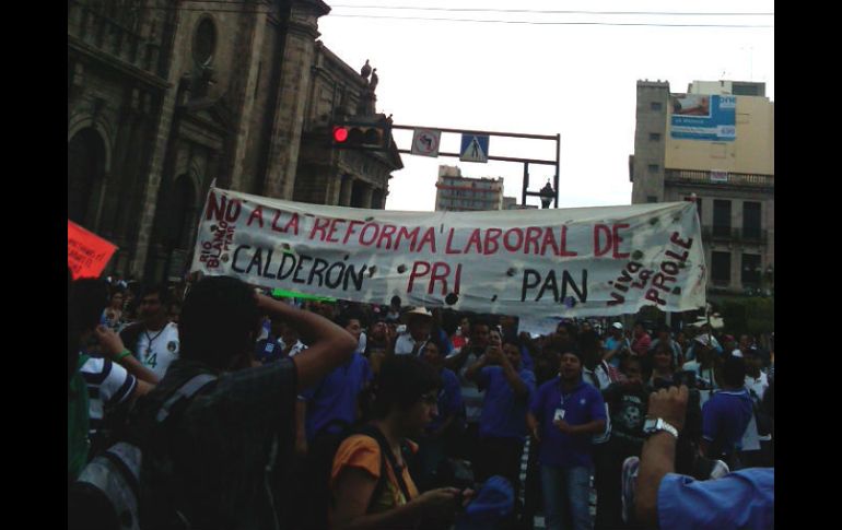 Jalisco | Integrantes del Frente Jalisco pretendían entregar documento a legisladores Bloquean avenidas Alcalde e Hidalgo por rechazo del Congreso En el Legislativo no recibieron a integrantes del Frente Jalisco; pretendían entregar documento para que se solidaricen contra reforma laboral Por: EL INFORMADOR 26 de septiembre de 2012 - 17:57 hs En el lugar se encuentran integrantes de alrededor 80 sindicatos. / GUADALAJARA, JALISCO (26/SEP/2012).- Manifestantes del Frente Jalisco contra la reforma laboral bloquean pasadas las 18:30 horas la circulación en avenida Alcalde e Hidalgo, debido a que en el Congreso les cerraron la puerta y no hay ningún diputado que reciba el documento que pretenden entregar. La exigencia es que sea al menos un legislador el que reciba su documento, en el que demandan el Congreso estatal se solidarice con los trabajadores en el rechazo a la reforma laboral. La circulación está detenida en ambos sentidos de avenida alcalde, así como en Hidalgo. Con pancartas y consignas de rechazo a la reforma laboral, los integrantes de alrededor de 80 sindicatos prevalecen en el importante cruce del Centro tapatío. El bloqueo ya genera conflictos a la circulación. EL INFORMADOR / LETICIA FONSECA Temas Manifestaciones en Jalisco Vialidad Reforma Laboral Sindicatos Lee También Esto costará el Gas LP en Jalisco en la semana del 13 al 18 de octubre Así se vive la Romería 2025 este domingo 12 de octubre (FOTOS) "La Virgen me salvó del cáncer de mama", agradecen la vida, salud y bienestar en la Romería 2025 Lluvias inundan Puerto Vallarta; se reportan más de 300 viviendas afectadas Recibe las últimas noticias en tu e-mail Todo lo que necesitas saber para comenzar tu día Registrarse implica aceptar los Términos y Condiciones