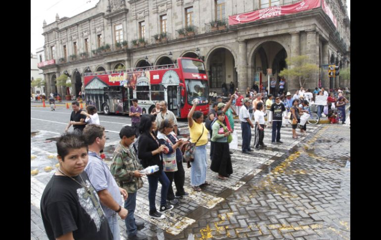 Jalisco | Las avenidas que presentaron mayor caos vial fueron Juárez, Hidalgo y 16 de septiembre Bloqueo de artesanos afecta por cinco horas el tráfico Las avenidas que presentaron mayor caos vial fueron Juárez, Hidalgo y 16 de septiembre Por: EL INFORMADOR 14 de julio de 2011 - 18:11 hs La tarde de hoy, cerca de 100 artesanos se manifestaron en el cruce de las avenidas Alcalde e Hidalgo. S. NÚÑEZ / -Artesanos desalojados generan caos vial en el Centro tapatíoGUADALAJARA, JALISCO (14/JUL/11).- La manifestación de alrededor de 100 artesanos que protestaron frente a Palacio municipal de Guadalajara en protesta porque los desalojaron de distintos puntos del Centro de la ciudad colapsó de las 13:00 a las 18:00 horas las principales vialidades de la zona, según informa la Secretaría de Vialidad y Transporte ( SVyT). Después de que se retiraron los artesanos, se registró la marcha de un movimiento de jóvenes que salió de Avenida Chapultepec y avanzó por Avenida Hidalgo hasta la Plaza Tapatía. “Esto agudizó el caos vial que había por la marcha de los artesanos; entonces, todo el Centro estuvo muy cargado de tráfico, especialmente en Juárez, Hidalgo y 16 de septiembre”, indica Comunicación Social de la SVyT. EL INFORMADOR/ALEJANDRA GUILLÉN Temas Manifestaciones en Jalisco Avenida Chapultepec Vialidad Recibe las últimas noticias en tu e-mail Todo lo que necesitas saber para comenzar tu día Registrarse implica aceptar los Términos y Condiciones