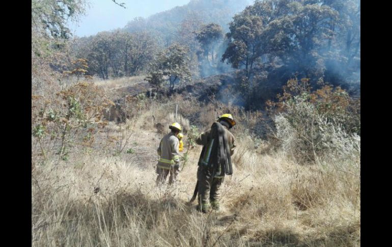 GUADALAJARA, JALISCO (28/MAR/2017).- Bomberos de Zapopan combaten desde las 13:00 horas un incendio en la zona de El Fortín y la parte alta de Bugambilias, junto al bosque La Primavera, que fue detectado a tiempo pero, ante el fuerte viento, alcanzó a afectar una zona de unas cinco hectáreas de arbolado.Los bomberos zapopanos explicaron que, en este caso, ellos mismos detectaron la columna de humo del incendio, pero que cualquier señal de un posible incendio forestal debe ser reportada al teléfono 911.La detección temprana de este martes permitió colocar pipas de agua en puntos estratégicos para contener el fuego y evitar que llegara a domicilios; los bomberos dijeron que está controlado desde las 15:00 horas, pero se mantienen en el lugar para evitar que se salga de control.