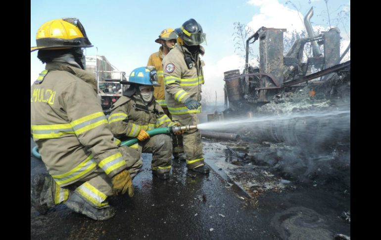Jalisco | Las llamas alcanzaron a quemar un tráiler cargado de azúcar Bomberos de Tlajomulco controlan incendio en pastizal Las llamas alcanzaron a quemar un tráiler cargado de azúcar, del cual se quemó la mitad de la carga Por: EL INFORMADOR 23 de marzo de 2016 - 18:19 hs El fuego se presentó en una superficie de unas diez hectáreas debido al fuerte viento. ESPECIAL / GUADALAJARA, JALISCO (23/MAR/2016).- La tarde de este miércoles se presentó un incendio en un área de pastizal en la población de Buenavista en el municipio de Tlajomulco, el cual al propagarse alcanzó a quemar un tráiler también, informó Bomberos y Protección Civil municipal. La brigada forestal se percató del siniestro tras lo que reportó el hecho a Bomberos, que acudieron al kilómetro 38 de la carretera Guadalajara-Morelia en el sentido hacia el norte. En el sitio se encontraba un tráiler cargado de azúcar del cual se quemó la mitad de la carga. Además, parte de la cabina del tráiler. De acuerdo a las autoridades, el incendio se presentó en una superficie de unas diez hectáreas debido al fuerte viento que se presentó este día hasta alcanzar finalmente al tráiler que estaba estacionado a la orilla de la carretera. Aunque el fuego provocó conflictos viales en la zona debido a que el humo impedía la visibilidad, no se reportaron personas lesionadas. Temas Seguridad Incendios Bomberos Lee También Detienen a pareja por extorsionar a hombre en el Centro Histórico Vinculan a proceso a joven implicado en violento robo en avenida Del Mercado Presuntos implicados en nueva modalidad de extorsión tendrán audiencia ESTE día Caída de árbol provoca cierre vial en avenida Maestros Recibe las últimas noticias en tu e-mail Todo lo que necesitas saber para comenzar tu día Registrarse implica aceptar los Términos y Condiciones
